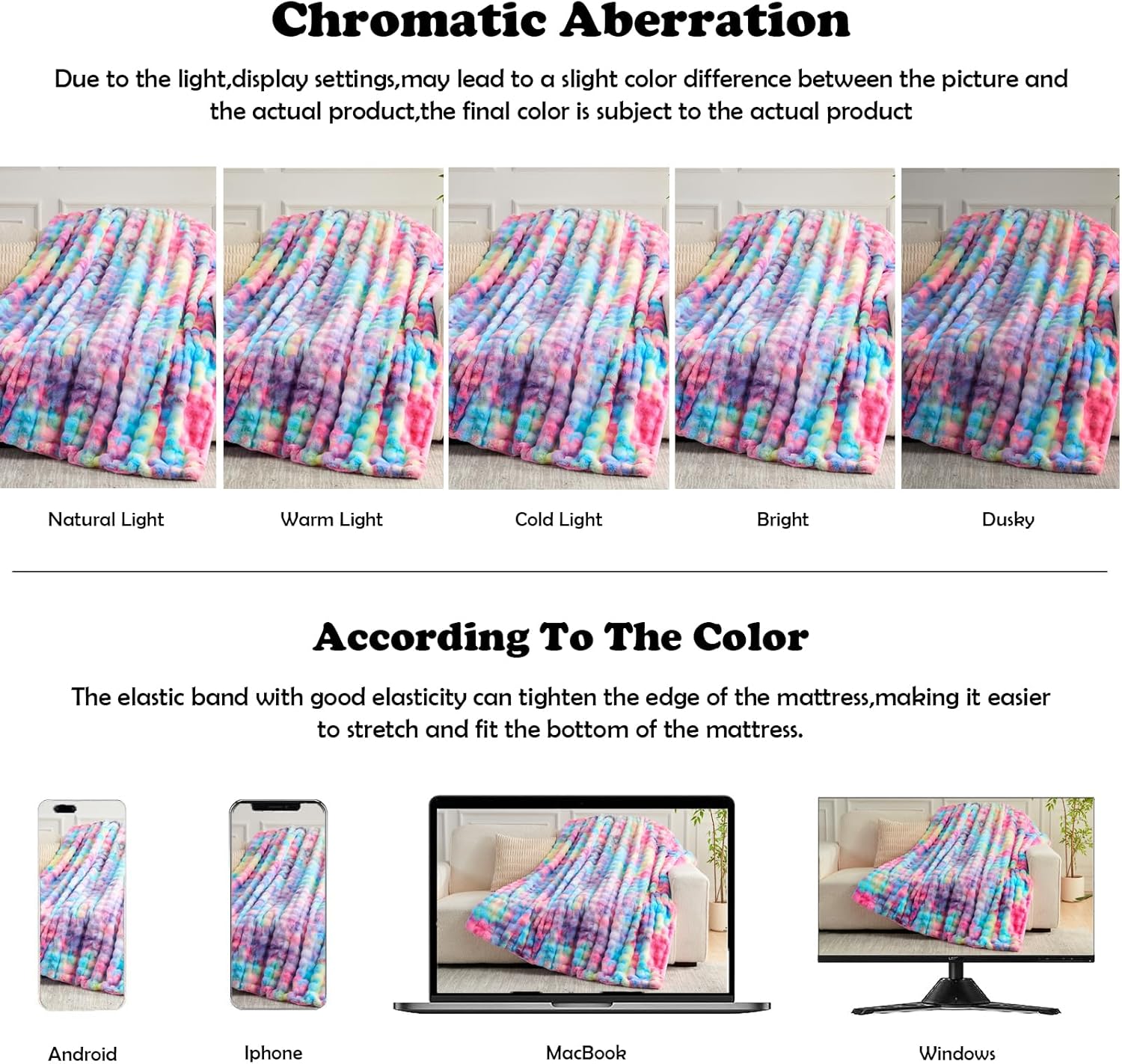 NEWCOSPLAY Faux Fur Twin Blanket Dark Rainbow Luxury Fluffy Thick Warm Bubble Blanket for Couch Sofa Bed 700GSM (Dark Rainbow, Twin(60"x80"))