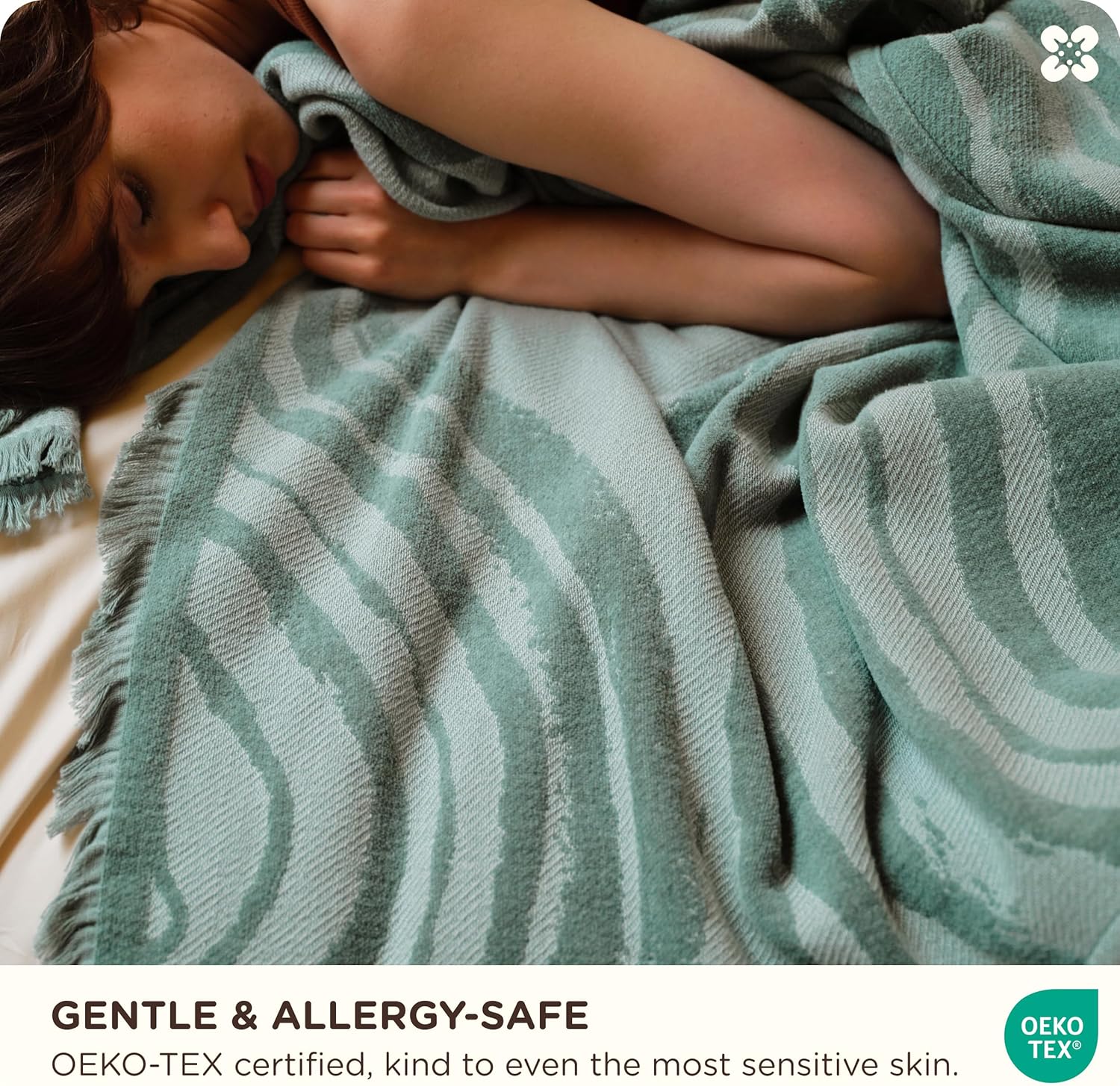 - NATURALLY SOFT & BREATHABLE: Made with 100% cotton yarn, this throw is soft and breathable. Provides year-round warmth with moisture absorption and anti-static comfort. Allergy-friendly and OEKO-TEX certified. Stripes use chenille yarn from Vietnam; base uses Indian cotton.