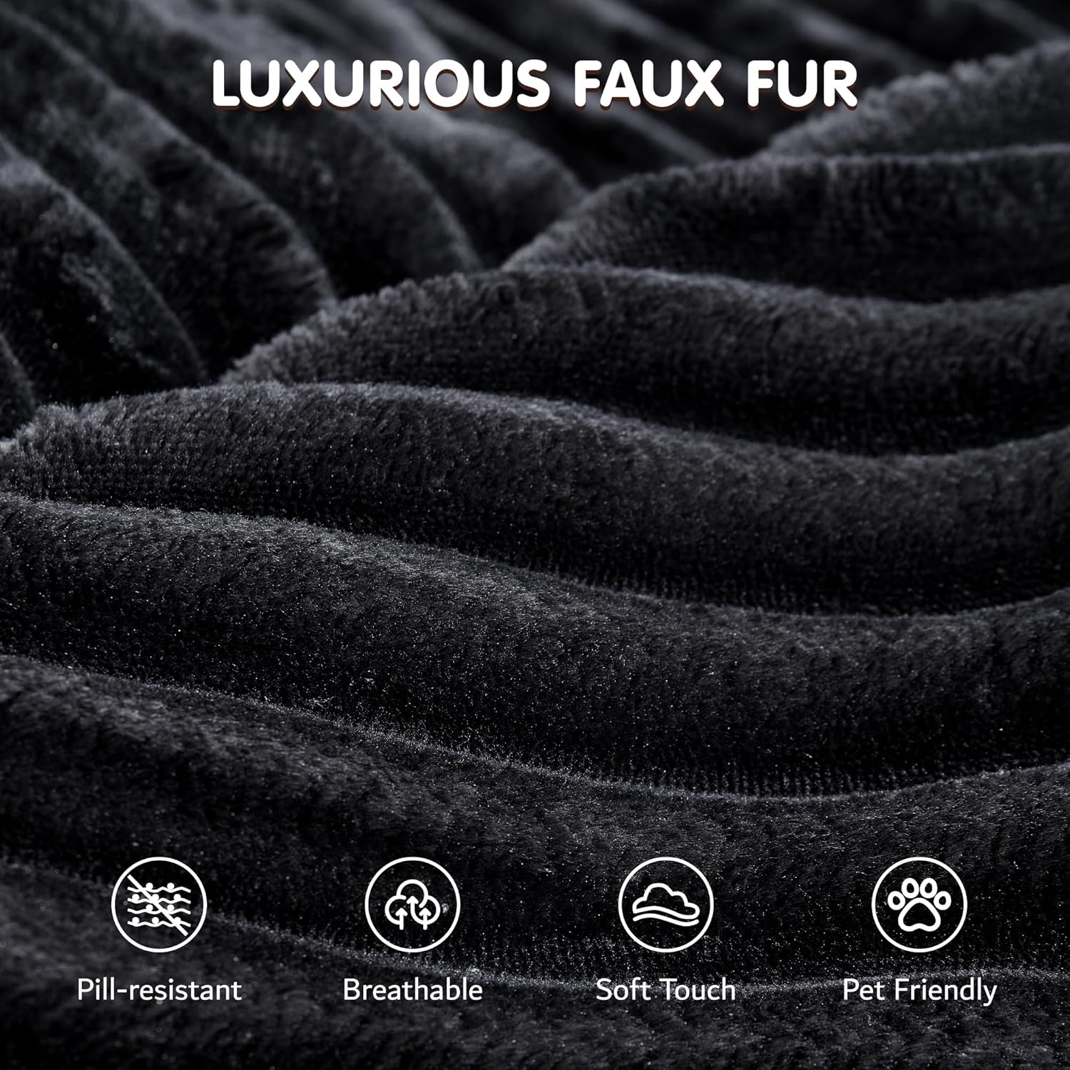 ovios 58" Oversized Round Chair Lounge Chaise Indoor, No Assembly Required, Cloud Large Circle Chair with Plush Fuax Fur, Fluffy Modern Sleeper Sofa Bed for Reading Yoga, Black (Plush Corduroy Fabric)