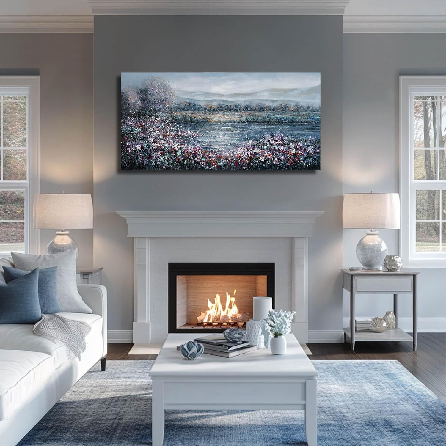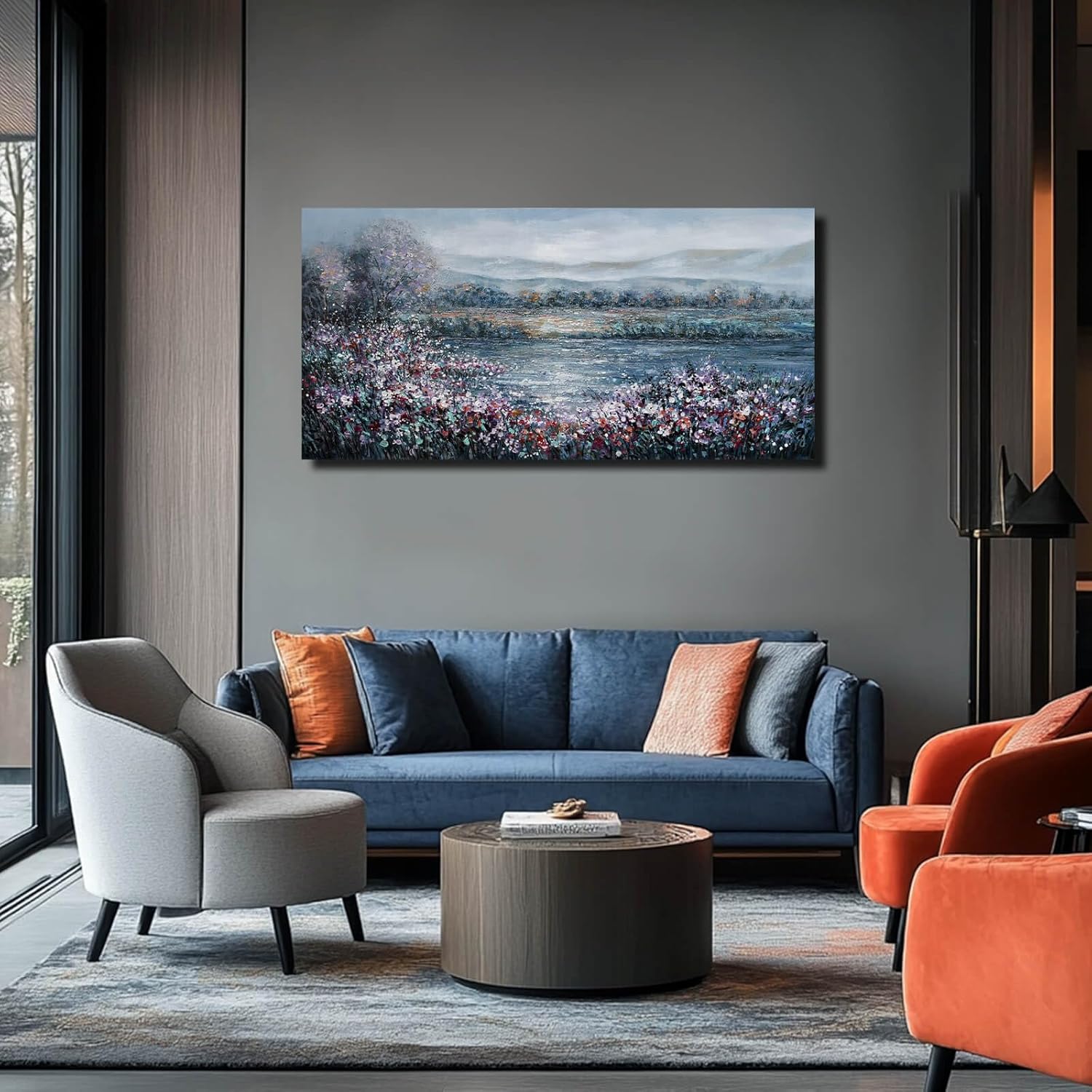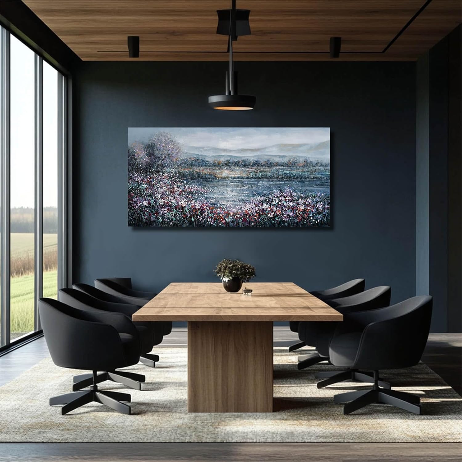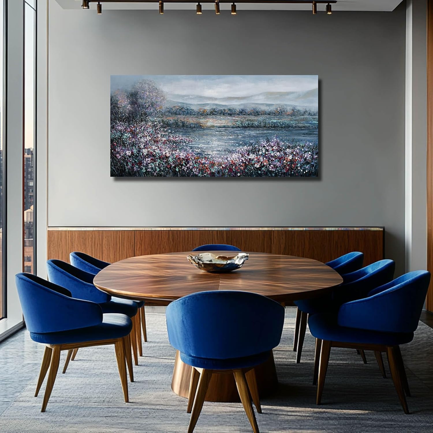 CHUDANHAO Abstract Wall Art for Bedroom White Wall Decor Purple Flower Artwork Landscape Wall Paintings 24"x48" Navy Blue Pictures for Walls