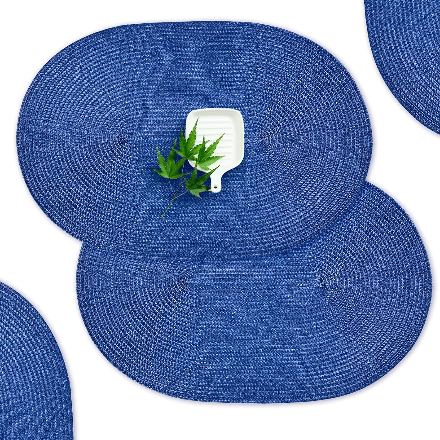AHHFSMEI Placemats Set of 4 for Dining Table Washable Woven Vinyl Non-Slip 18x12 inches Placemat Heat-Resistant Durable Table Mats for Dining Table Easy to Clean(Navy Blue 4)