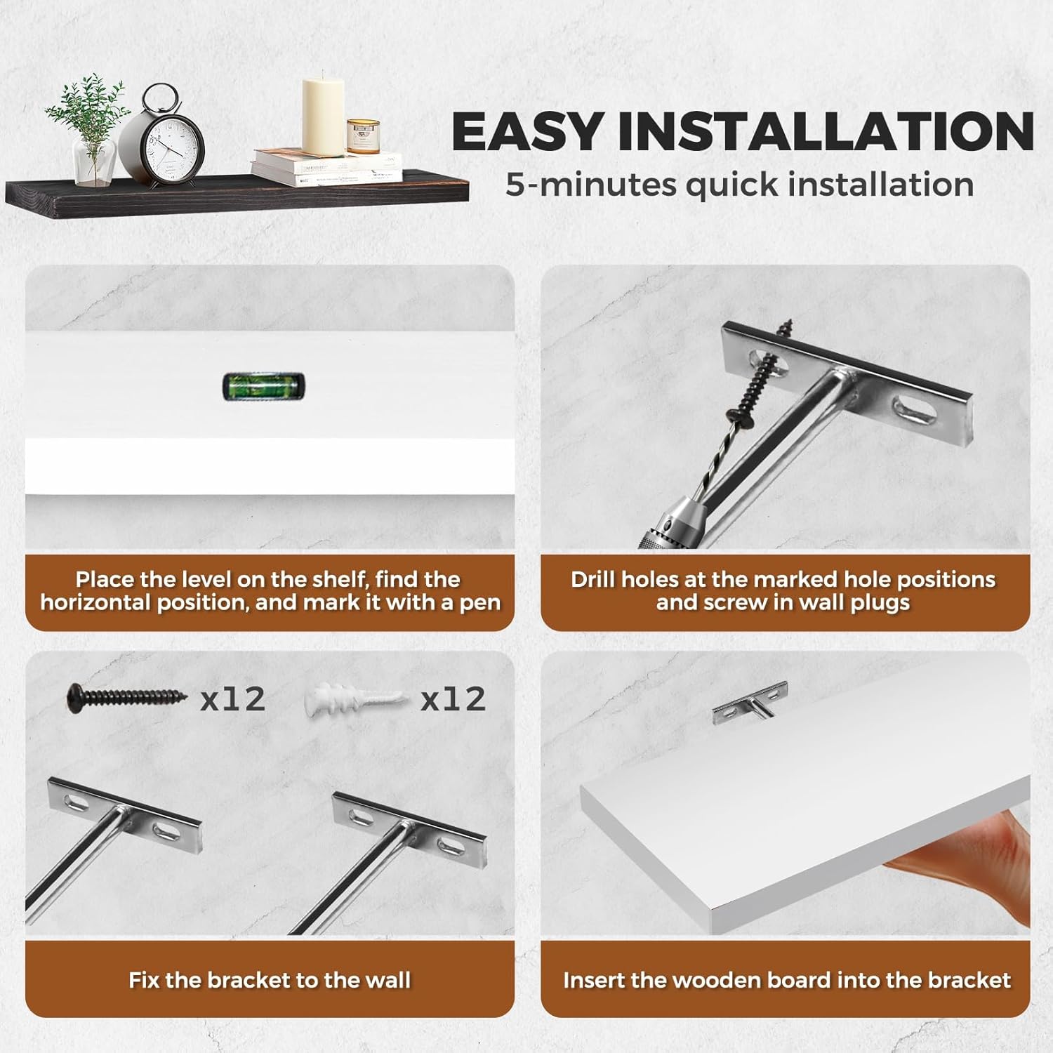 - Easy Installation Package: Includes all necessary hardware, making these DIY-friendly shelves simple to install, even for first-time users
