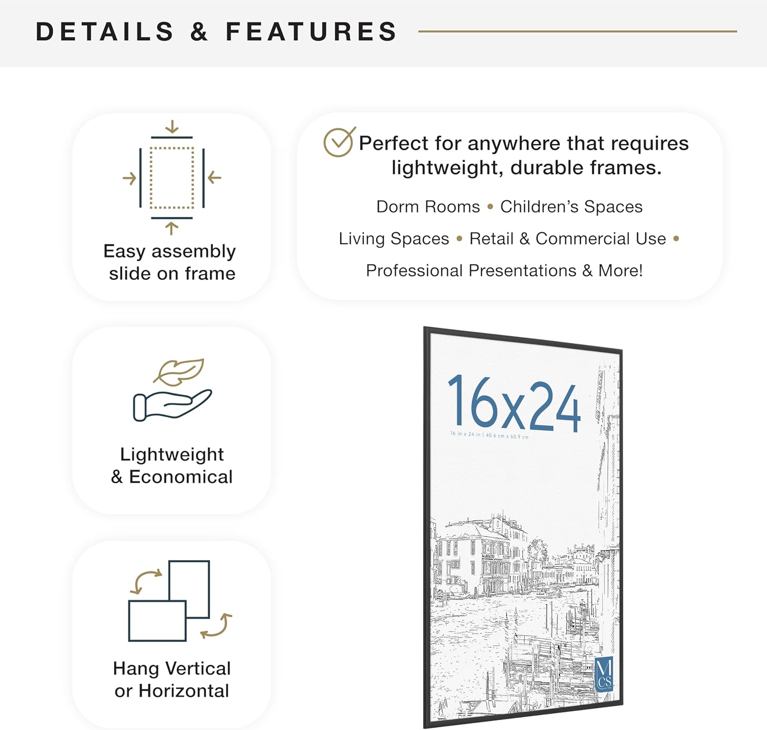 MCS Original Poster Frame 16x24 Black Lightweight Vertical & Horizontal Wall Hanging Large Picture Frame for Posters, Art Prints & Gallery Wall (6-Pack)