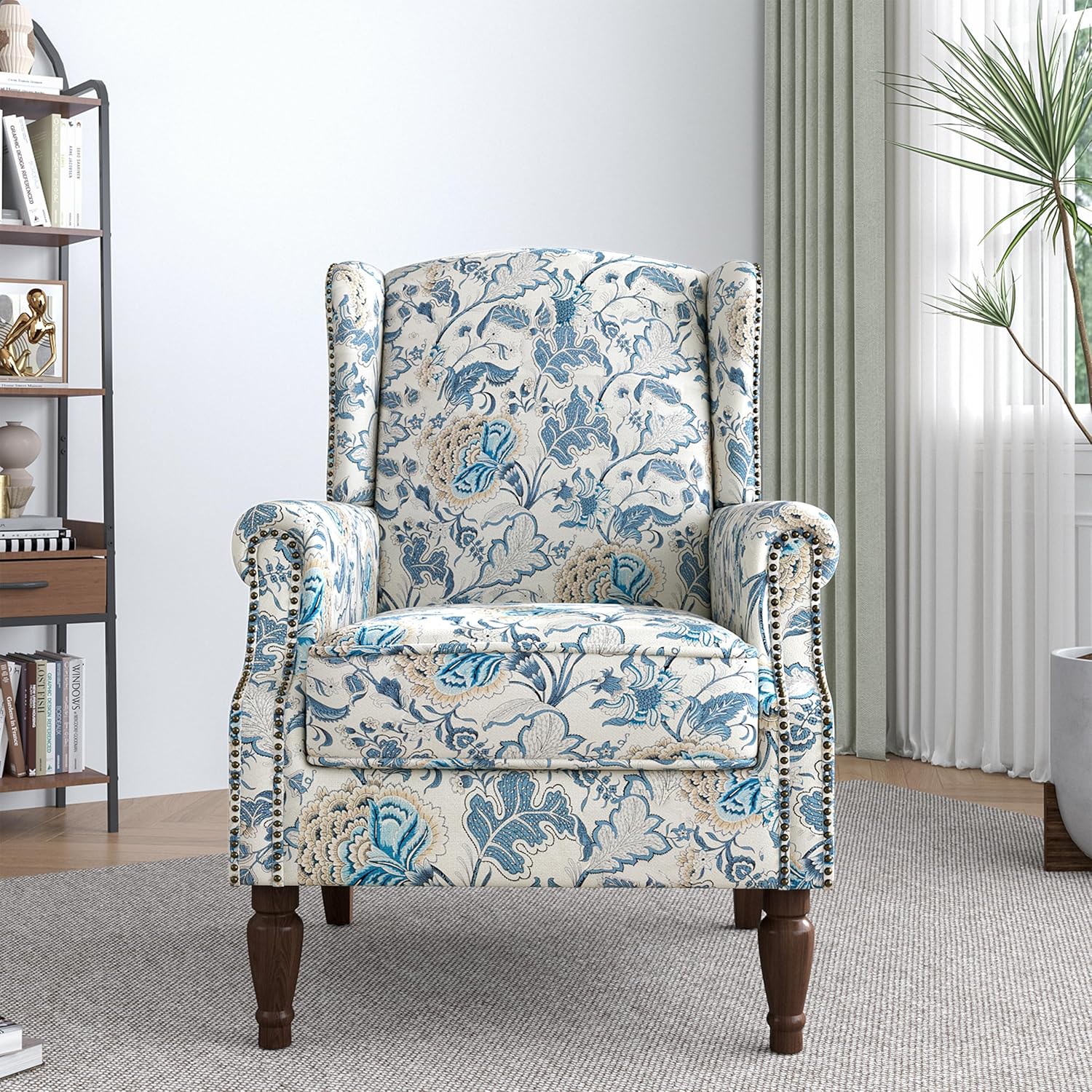 - Modern Design:This mid-century modern pushback chair features a classic wingback design with a floral and bird pattern on the fabric that adds a more upscale touch to the decor for visual enjoyment! Place it in your studio to enhance office comfort; by the fireplace for casual holiday time; or in your bedroom for cozy lounging.