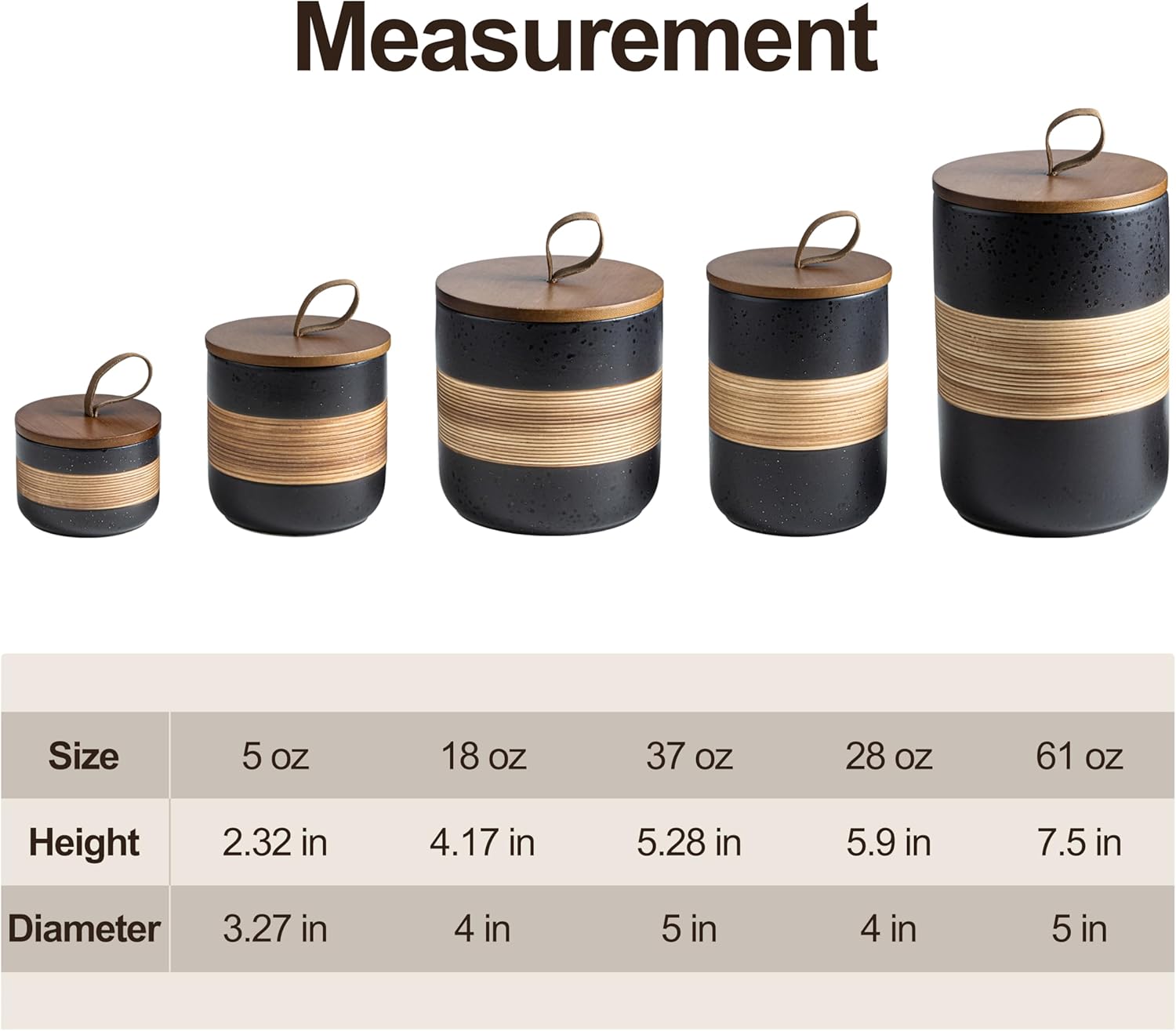 - Stackable & Space Saving: Five ceramic jar with lid of different sizes can be stacked together, and their compact design also saves kitchen space, making the kitchen more tidy and orderly. Meanwhile, it is easy to carry for outdoor picnics or camping