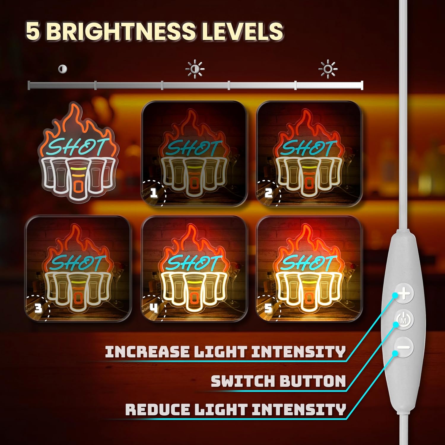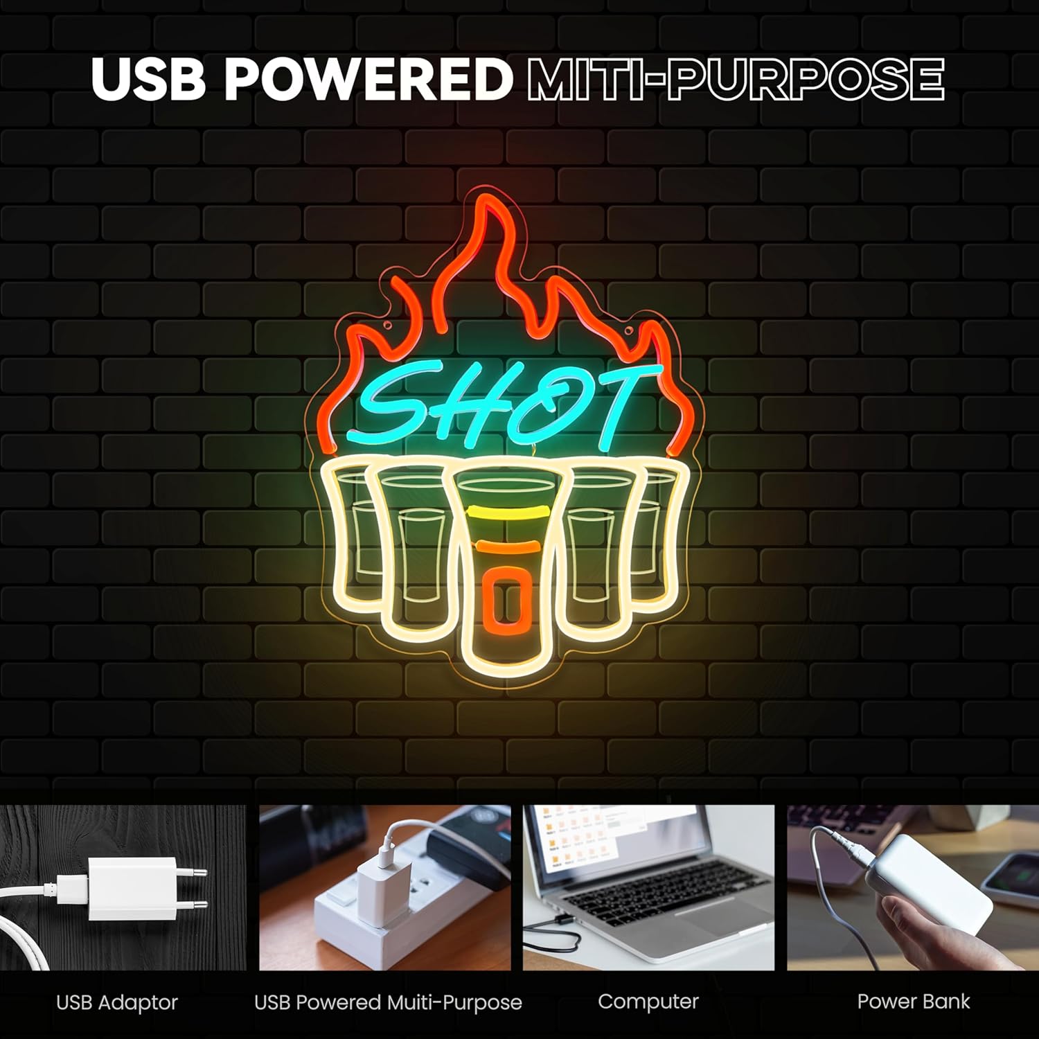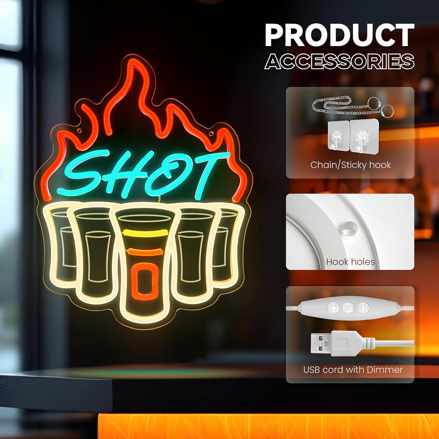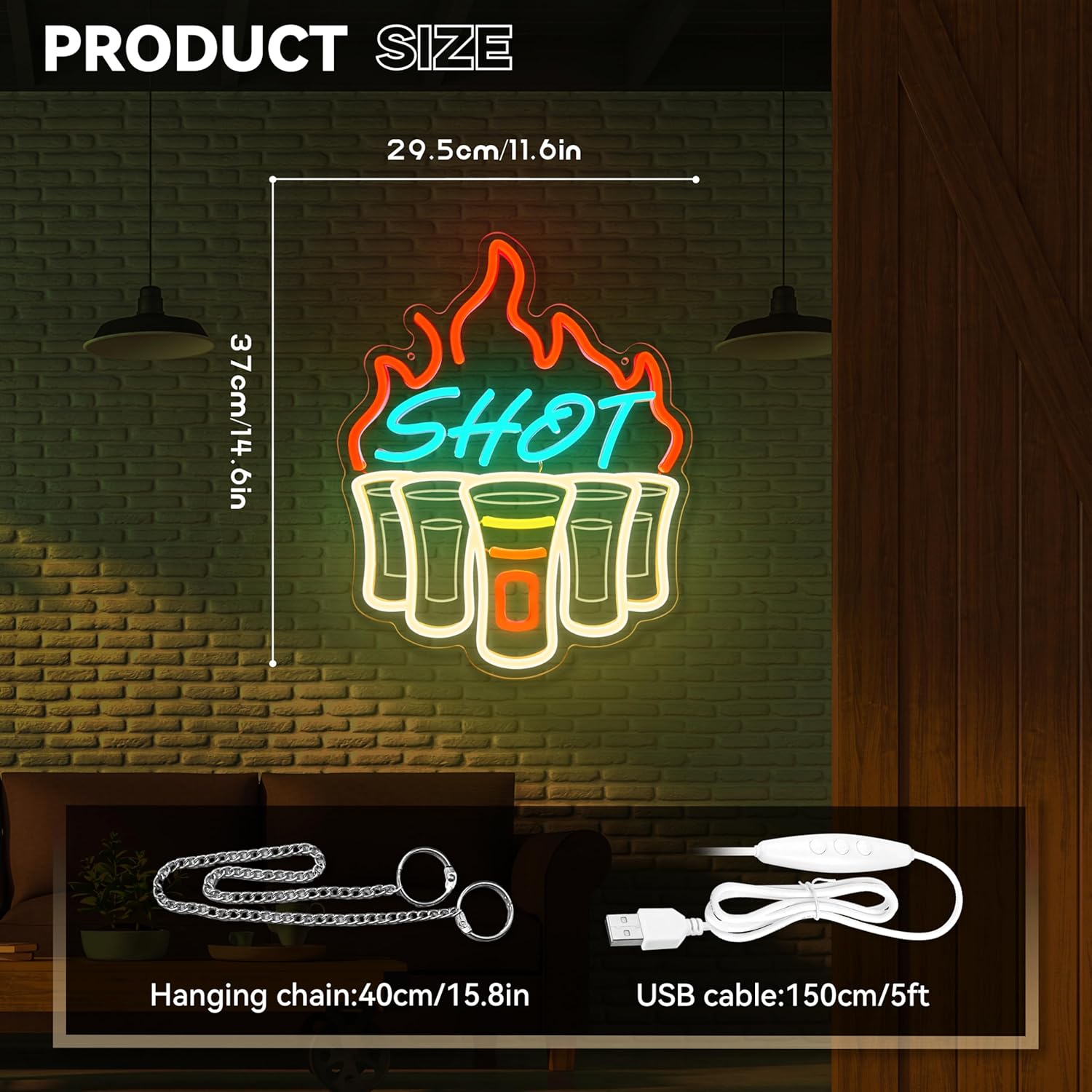 Shot Neon Sign, Bar Neon Signs for Wall Decor, Dimmable Acrylic Neon Lights for Home Bar Pub Club Bistro Man Cave Restaurant Party Decorations Gift