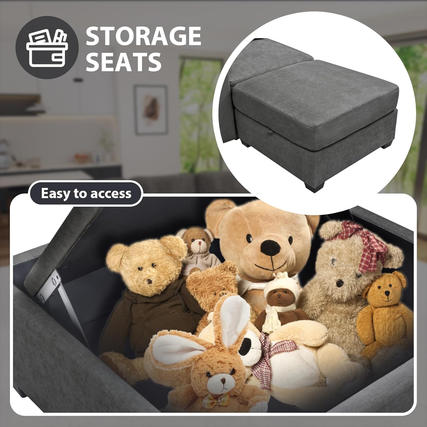 mestyl Modular Sectional Sofa Convertible L Shaped Sofa Couch Set with Storage for Living Room, Modern 3 Seater Modular Sectional Couch with Movable Ottoman (Grey)