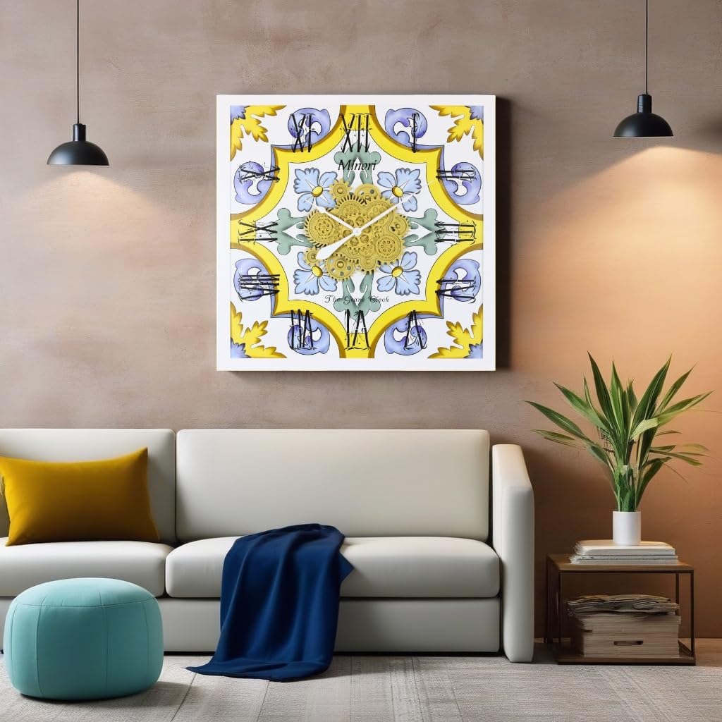 - Wall Clock Italy Collection with Real Moving Gears is an Art Timepiece inspired by the Famous Amalfi coast Tiles in Italy