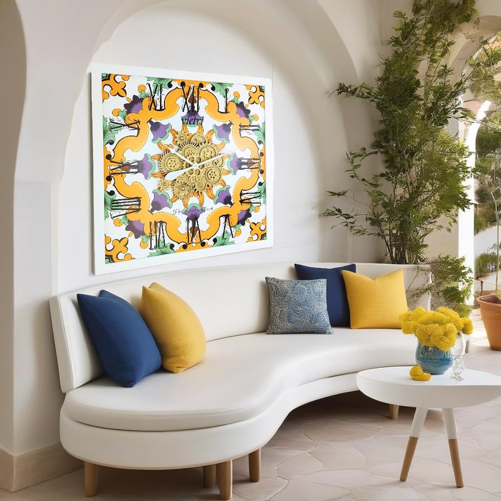 - Wall Clock Italy Collection with Real Moving Gears is an Art Timepiece inspired by the Famous Amalfi coast Tiles in Italy