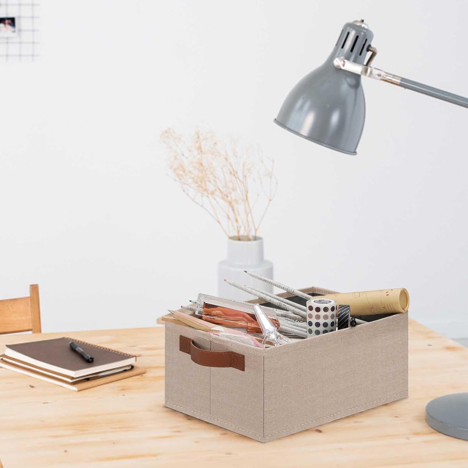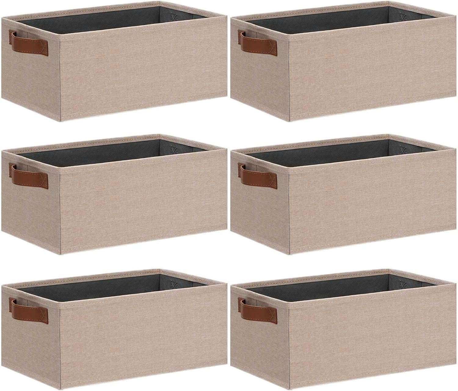 - 👍【SMALL STORAGE BINS】Set of 6 small storage bins, dimensions (each): 11.8(L) x 7.87(W) x 5.11(H) inch, which can store a variety of items to organize your home or office. With their perfect size and stylish appearance, these fabric storage baskets effortlessly blend with many furniture styles and color palettes, while keeping your home organized