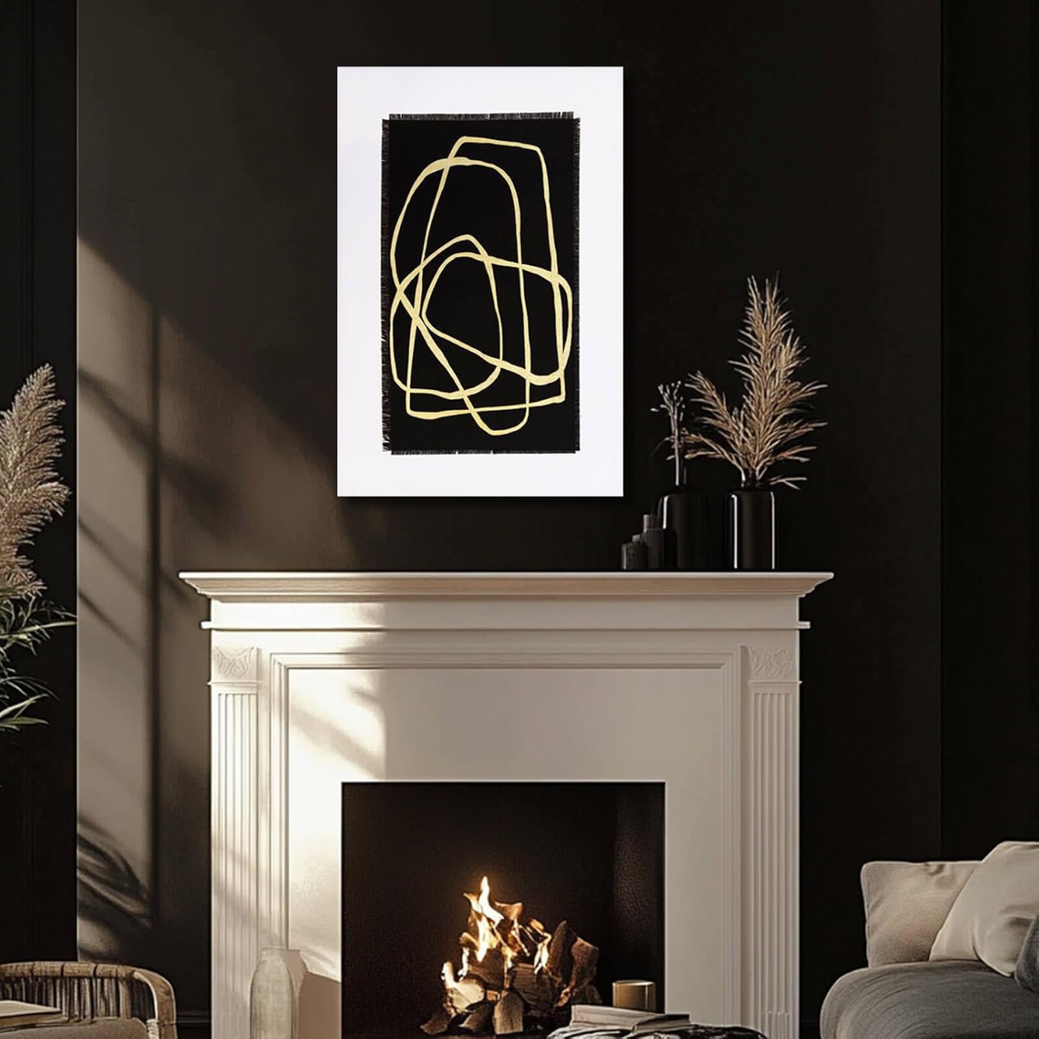 CHUDANHAO Minimalist Home Decor Black and Gold Canvas Painting Line Artwork Neutral Wall Art 24"x36" Bedroom Decorations Kitchen Art