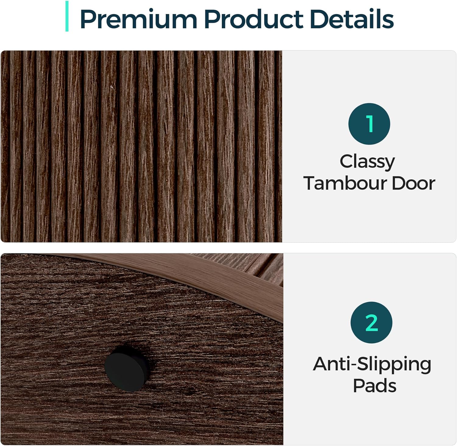 - Modern Elegance - Showcasing a distinctive curved silhouette and a stunning fluted tambour sliding door, this round end table effortlessly enhances your space with timeless sophistication. Its seamless blend of style and functionality creates a warm, inviting ambiance, making it a true statement piece in any home