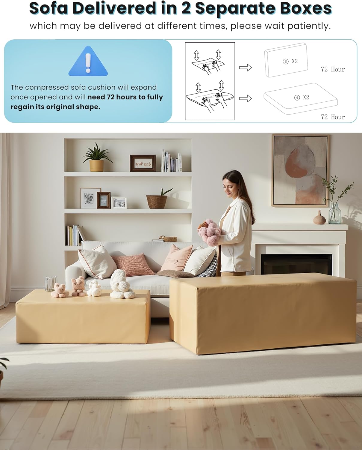 - 【Cozy and Safe Sofa Bed】The queen sofa bed features soft padding, along with included pillows and cushions for enhanced safety and comfort. Its enclosed design ensures a relaxing, supportive environment whether sitting, lounging, or sleeping. (Note: Sofa bed comes in two boxes and may arrive at different times)