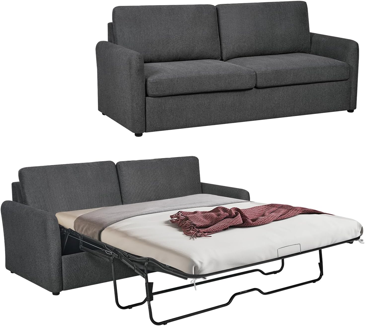 Queen Size Pull Out Sofa Bed, Convertible Sleeper Sofa Couch with Pullout Bed, 2 in 1 Sofa Bed Couch with Memory Foam Mattress for Living Room Office, Space-Saving, Dark Grey