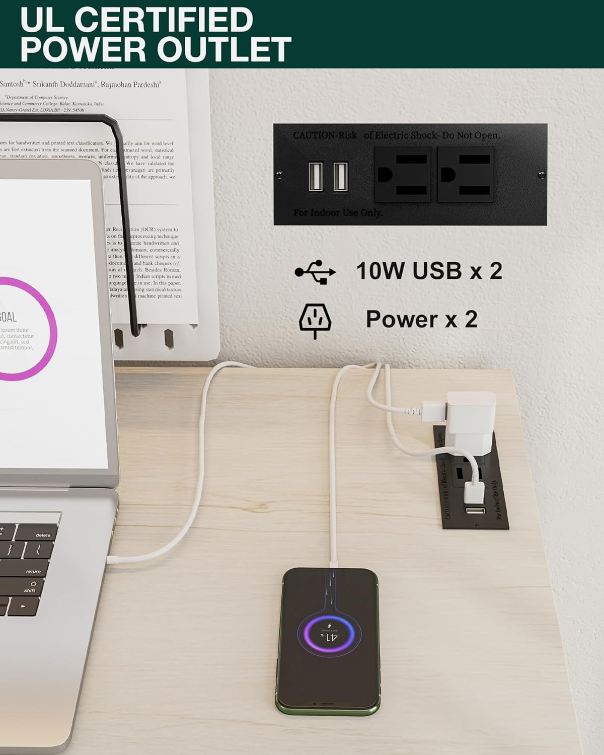 - 👍𝗜𝗡𝗧𝗘𝗚𝗥𝗔𝗧𝗘𝗗 𝗣𝗢𝗪𝗘𝗥 𝗛𝗨𝗕 – 𝗖𝗛𝗔𝗥𝗚𝗘 𝗘𝗩𝗘𝗥𝗬𝗧𝗛𝗜𝗡𝗚 𝗔𝗧 𝗢𝗡𝗖𝗘 — Stay powered and productive with 2 built-in AC outlets and 2 USB ports—perfect for laptops, phones, tablets, and more. No more messy extension cords or reaching for distant plugs; this smart design keeps all your devices charged and your workspace neat