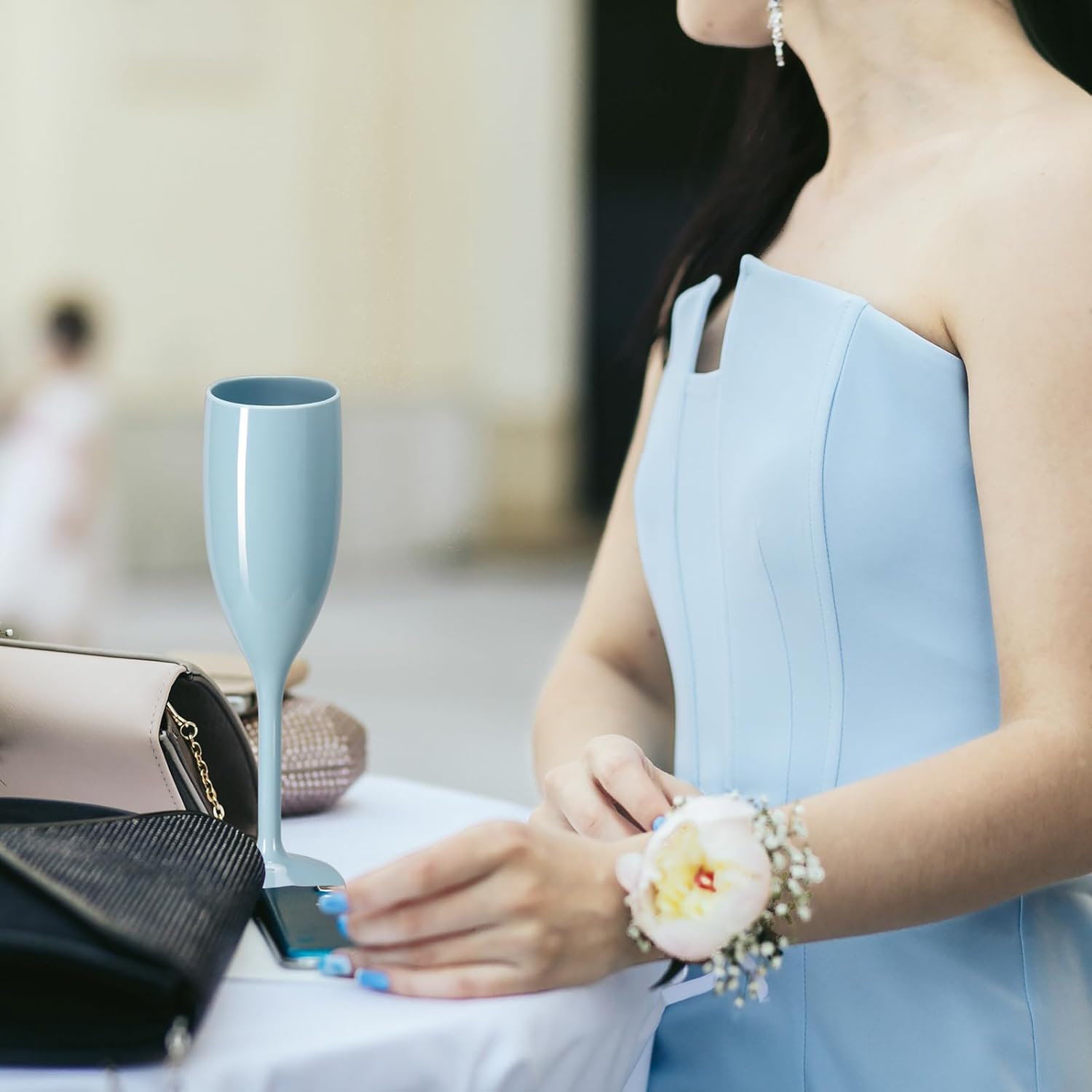 XUWAIDSGN Acrylic Champagne Flutes Toasting Glasses Unbreakable Mimosa Bar Reusable Wine Glasses Vintage Champagne Flutes Stemmed Drinking Cups 5.4 OZ for Christmas Birthday (24, Blue)