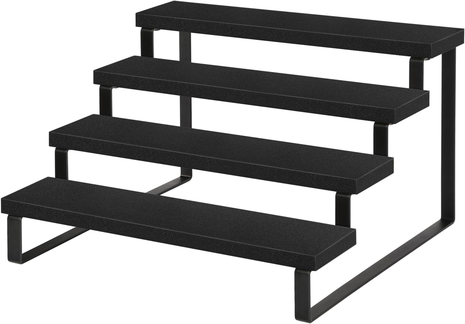 - Quick Setup & Easy Cleaning: You can have this 4-tier display riser stand assembled in 10 minutes with detailed instructions and tools. The wooden surface is waterproof and dust-free, a damp cloth could keep the counter shelf clean. (Assembly tools and accessories are included in the package)