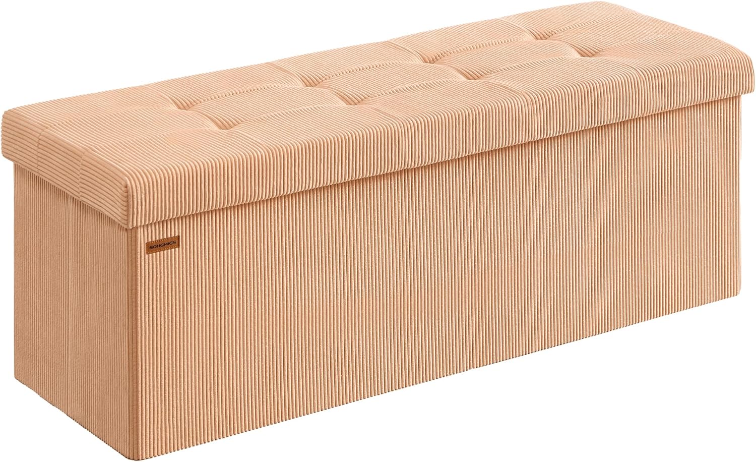 SONGMICS MAZIE Collection - Storage Ottoman Bench, Foldable Foot Rest, 15 x 43 x 15 Inches, End of Bed Bench, Storage Chest, Load 660 lb, Living Room, Bedroom, Entryway, Apricot ULSF604O01