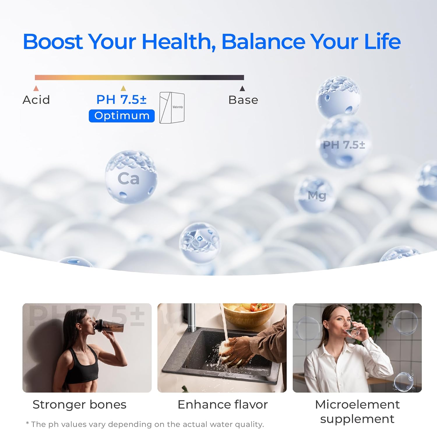 - [ Healthy Mineral Boost ] By original PCC mineralization technology, this undersink ro system activates specific mineral crystals to mimic the natural formation of spring water, adjusting purified water to an ideal, body-friendly pH of 7.5±. Enjoy not only the health-promoting benefits of weak alkaline water but also a smooth taste that enhances the flavours.【Note: The WD-F1A replacement filter may cause a slight increase in TDS due to its alkaline mineralized filter.】