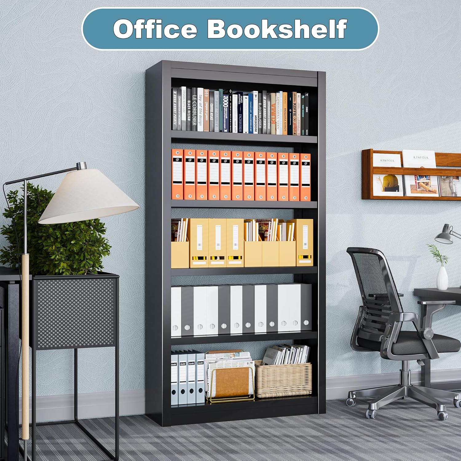 - 【Durable & Rust-Resistant】Made from sturdy metal, this bookcase is built to withstand daily use and resist rust, making it perfect for garages, offices, or humid environments.