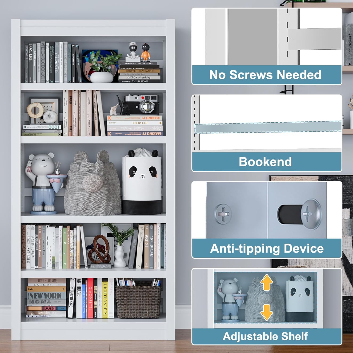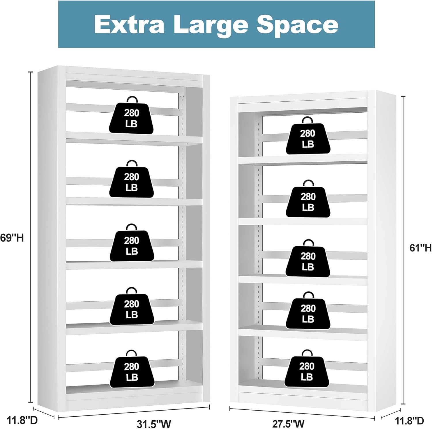 - 【Spacious & Heavy-Duty Design】This 5-tier metal sturdy bookshelf supports up to 280lbs per shelf, making it great for storing books, files, decor, or even heavy equipment. Ideal for both home and office use, it’s a top choice for heavy duty storage and office storage solutions.