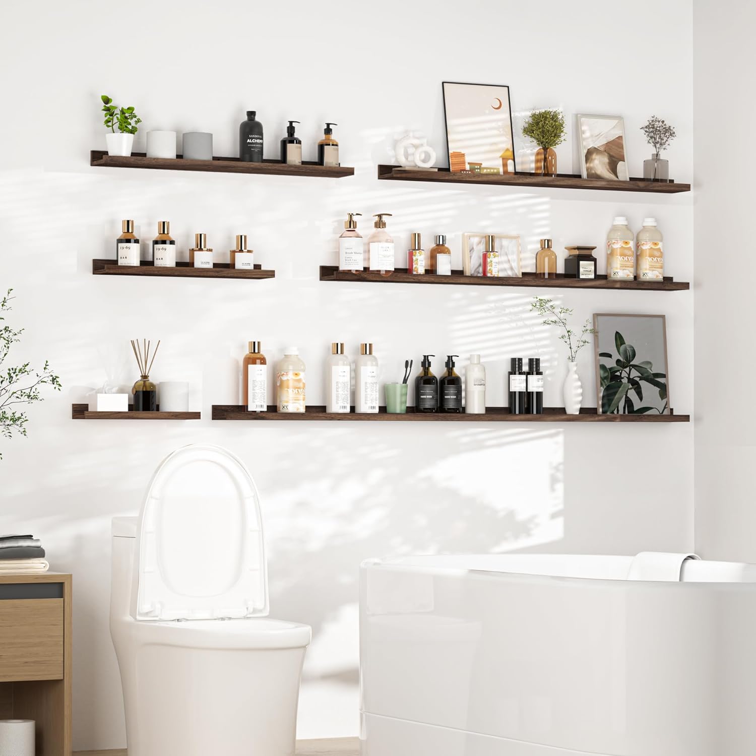 - Picture ledge Shelf for Walls: If you have dozens of pictures but don't know how to display them, Heimlove picture ledge shelves(especially large size) for walls are perfect! With our hanging shelves, store and display different types and sizes of photo frames in one place with no worries of falling off.
