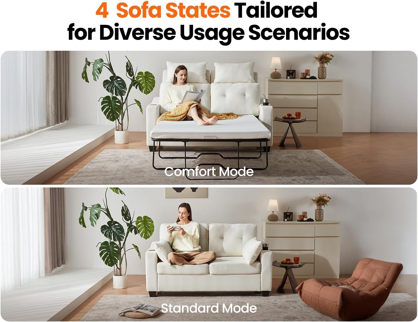 - 【Versatile 4-in-1 Sofa Modes for Every Moment】Designed to adapt to your lifestyle, this sofa transforms effortlessly between four configurations: Standard Mode, Comfort Mode, Nightlight Mode, and Sleep Mode. Whether you’re working, relaxing, or hosting guests, enjoy a flexible seating solution that fits any scenario