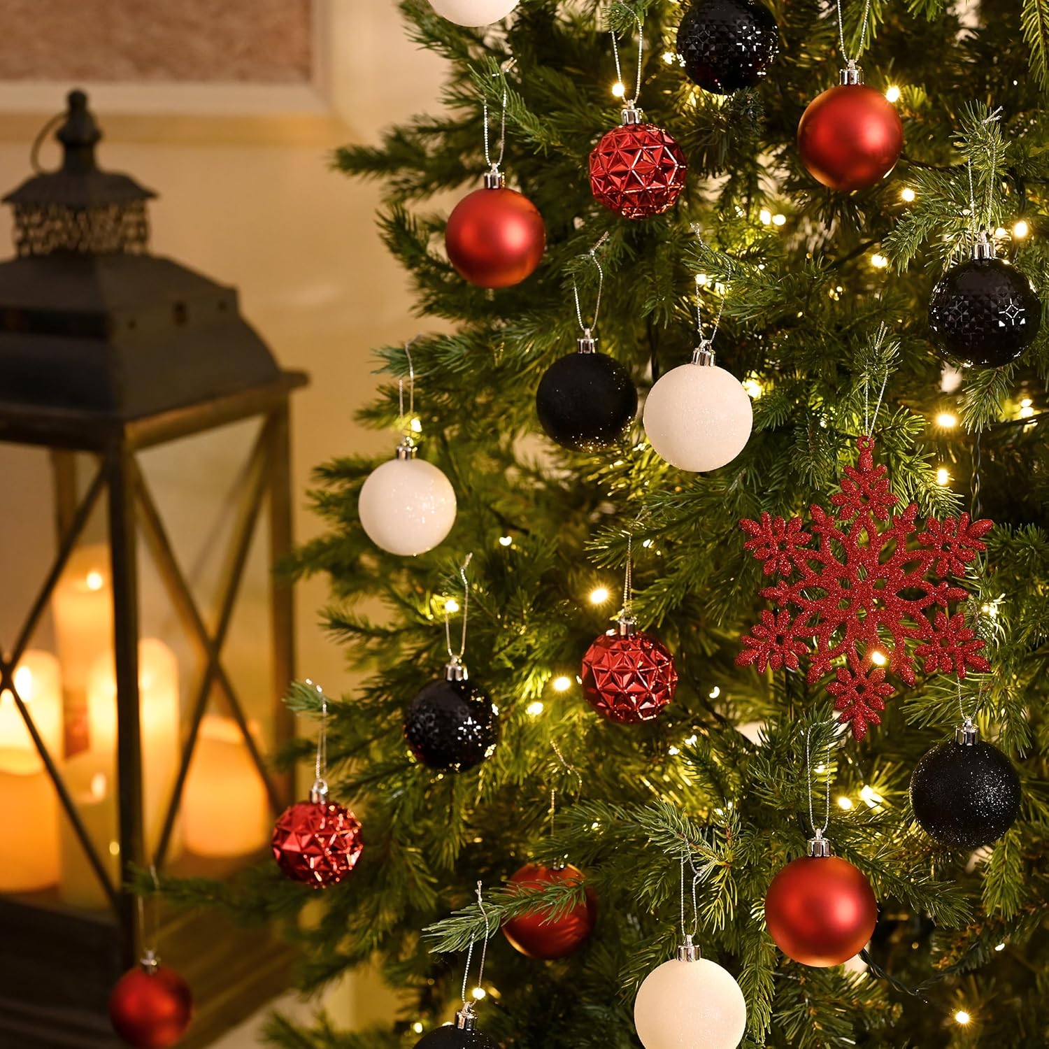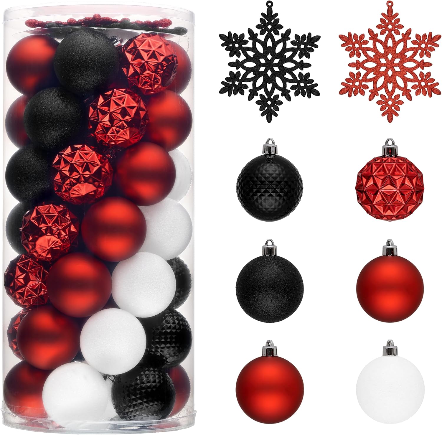 Valery Madelyn Christmas Tree Decorations Ornament Set for Fall Halloween, 50ct 2 Inches Red and Black Shatterproof Christmas Ball Ornaments Hanging Xmas Holiday Party Decor