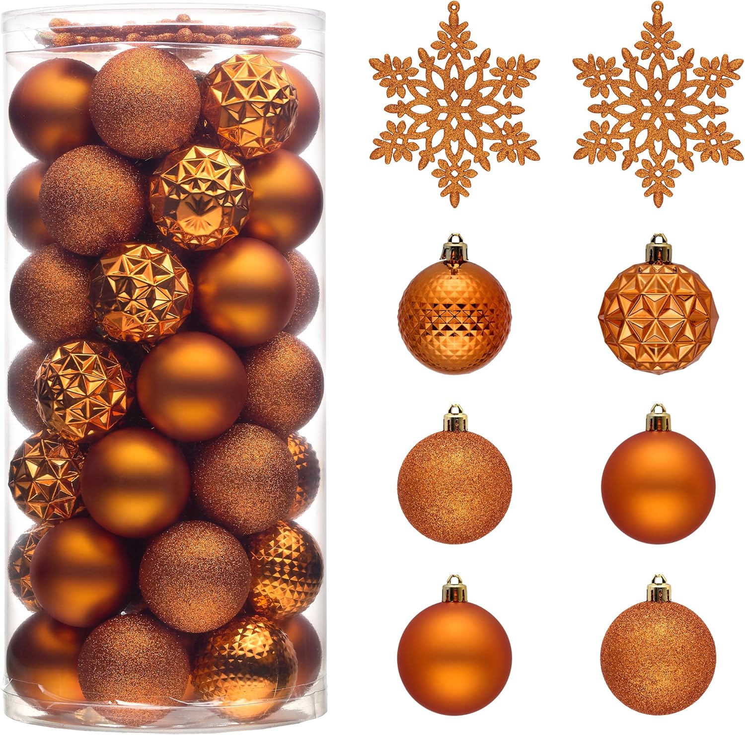 - 【Package and Size】This ornament ball set include 50pcs Christmas ornaments measuring 2 inches in diameter, featuring seamless connections for a polished look