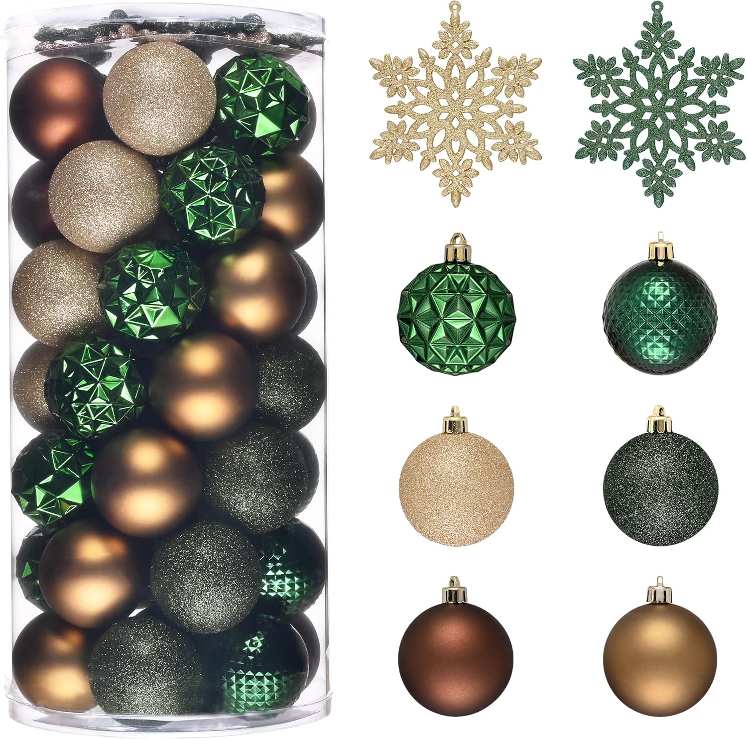 Valery Madelyn Christmas Tree Decorations Ornament Set for Fall Halloween, 50ct 2.36 Inches Green Brown and Gold Shatterproof Christmas Ball Ornaments Hanging Xmas Holiday Party Decor