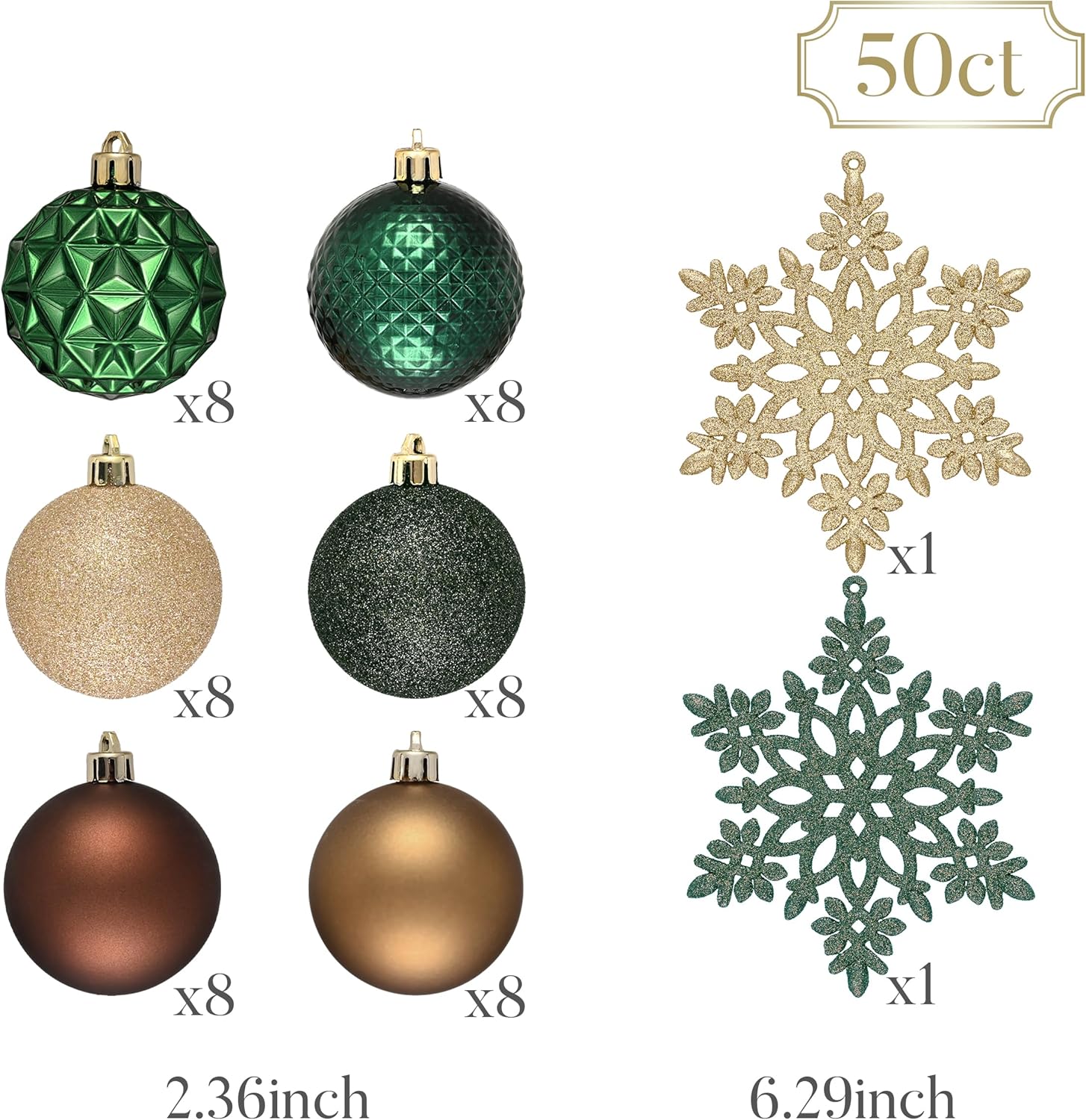 - 【Package and Size】This ornament ball set include 50pcs Christmas ornaments measuring 2.36 inches in diameter, featuring seamless connections for a polished look