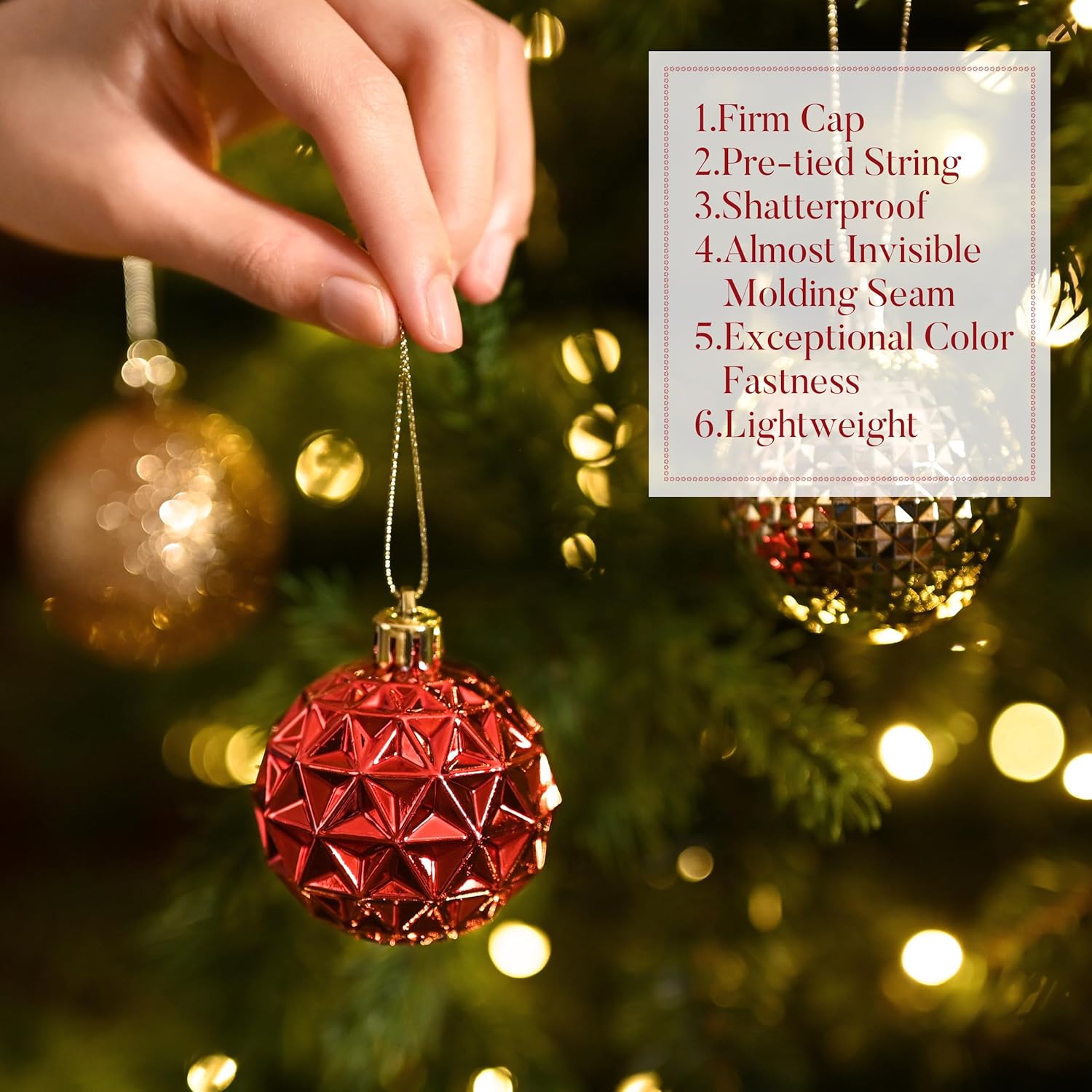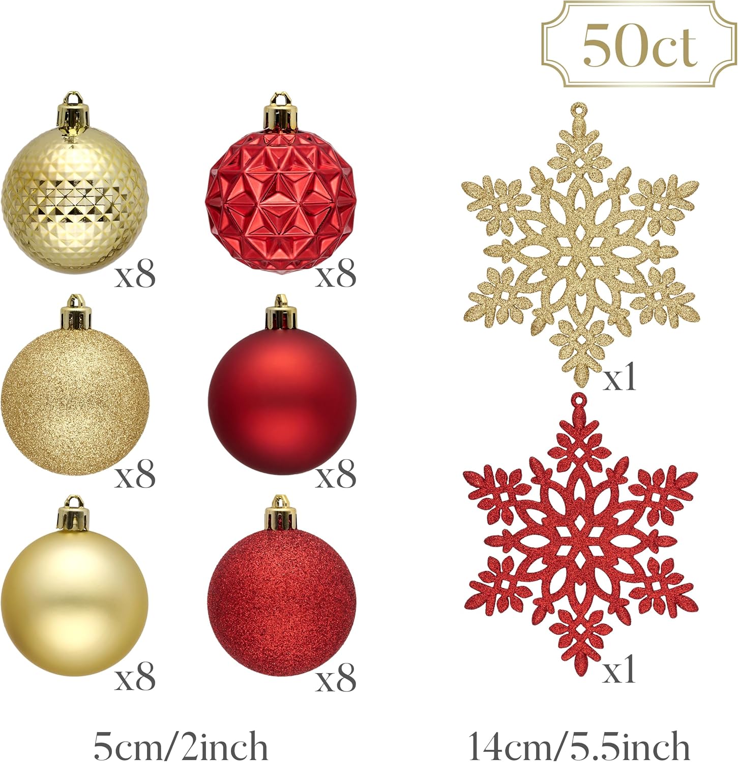- 【Package and Size】This ornament ball set include 50pcs Christmas ornaments measuring 2 inches in diameter, featuring seamless connections for a polished look