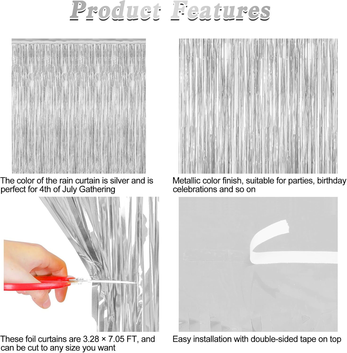 - Design: Each silver curtains features a sleek silver color with a reflective metallic surface, adding a touch of elegance and shine to your decor, suitable for your photo booth props.