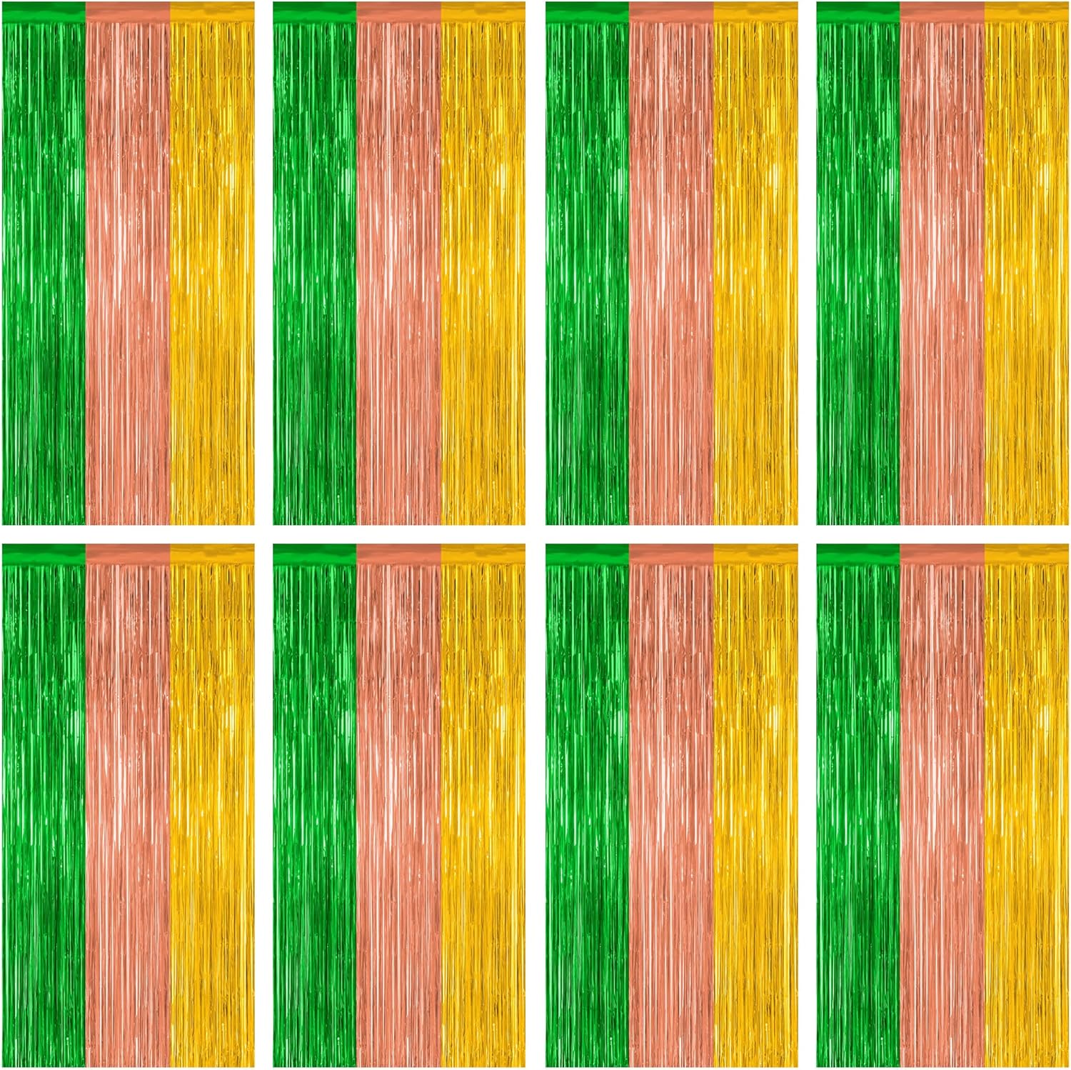 - Package Includes: This set includes 8 pcs Hawaiian foil curtains consisting of green, brown and yellow colors, each measuring 3.28 x 7.05 feet and can be cut to your desired length.