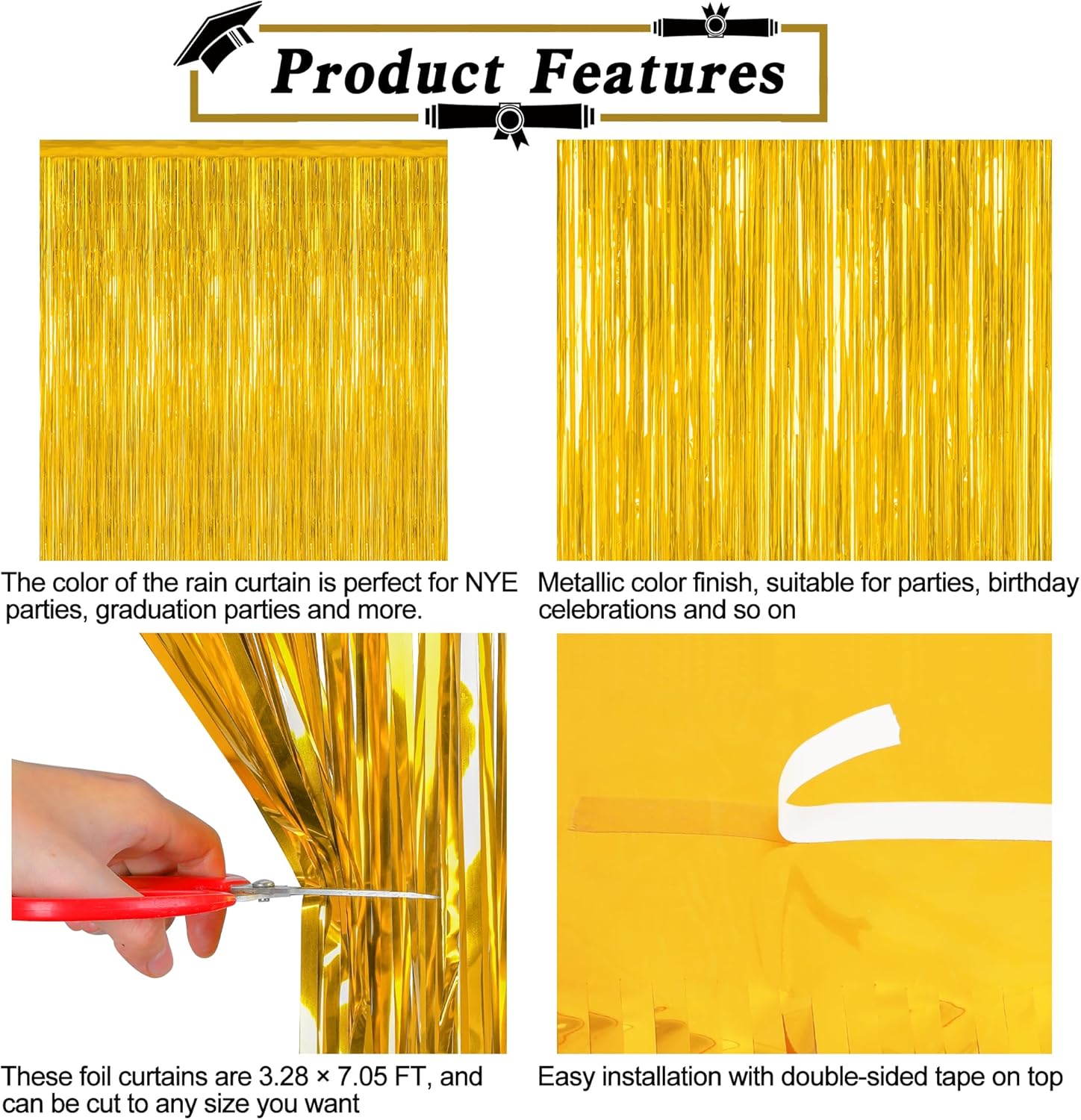 8 Pack 2025 Graduation Party Decorations, 3.28 FT x 7.05 FT Gold Backdrop, Metallic Graduation Photo Backdrop Grad Foil Curtains Party Streamer, Class of 2025 Decorations Grad Decor