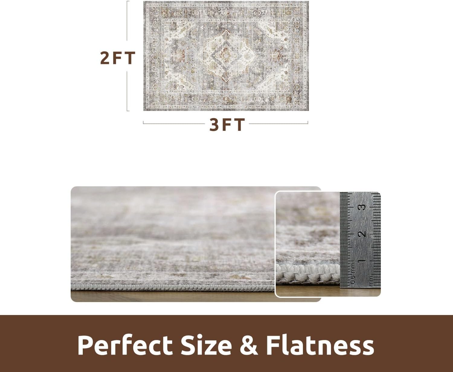 AMOAMI-2X3 Small Rug-Washable Rugs Entryway Mat Indoor-Soft Vintage Non Slip Rugs for Kitchen Laundry Room Bathroom Grey Decorative Accent Rug for in Front of Sink 24 Inch x36 Inch