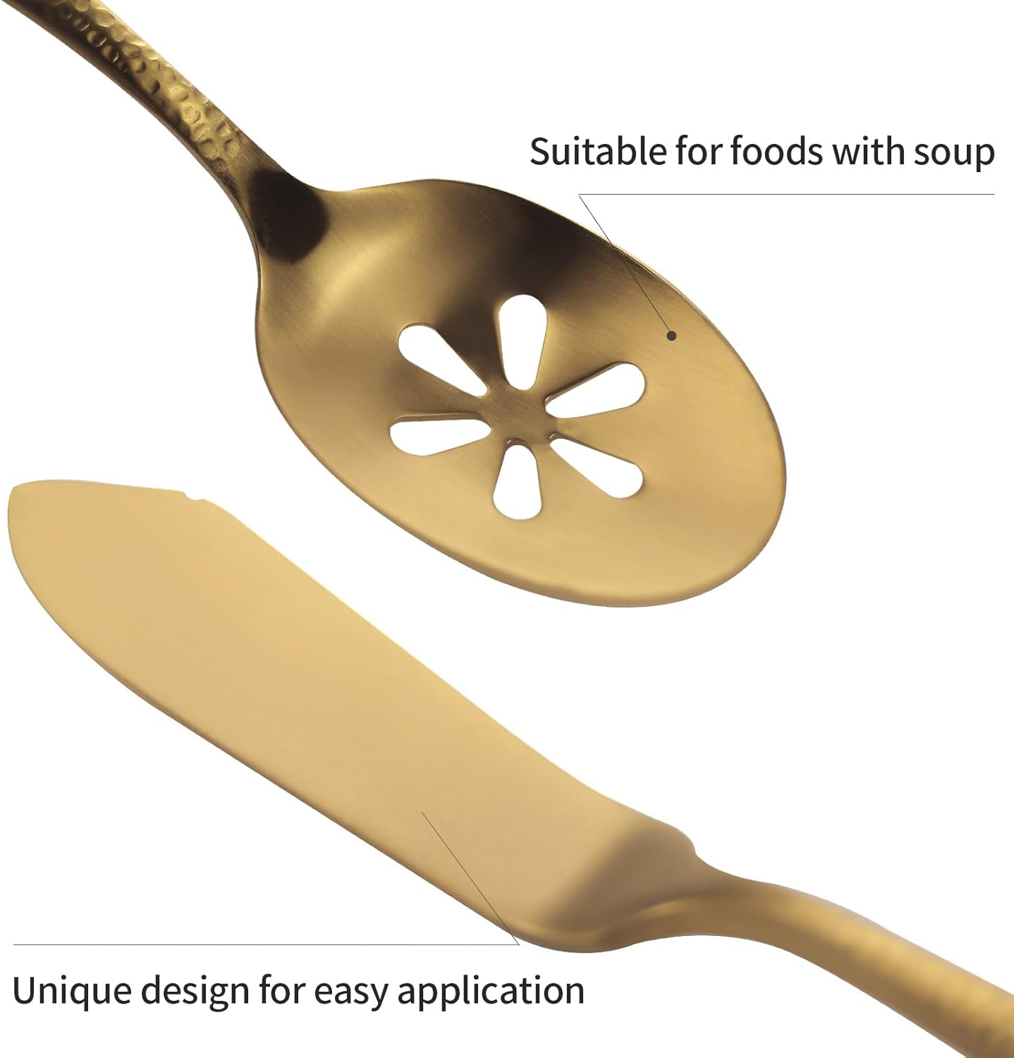 Silverware 45-Piece Matte Gold Hammered Flatware Set with Serving Utensils, Stainless Steel Thick Handle Matte Polished Cutlery Set for Wedding Hotel Restaurant, Service for 8