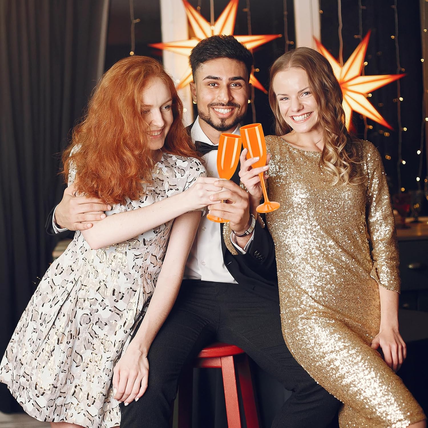 XUWAIDSGN Acrylic Champagne Flutes Toasting Glasses Unbreakable Mimosa Bar Reusable Wine Glasses Vintage Champagne Flutes Stemmed Drinking Cups 5.4 OZ for Christmas Birthday (10, Orange)