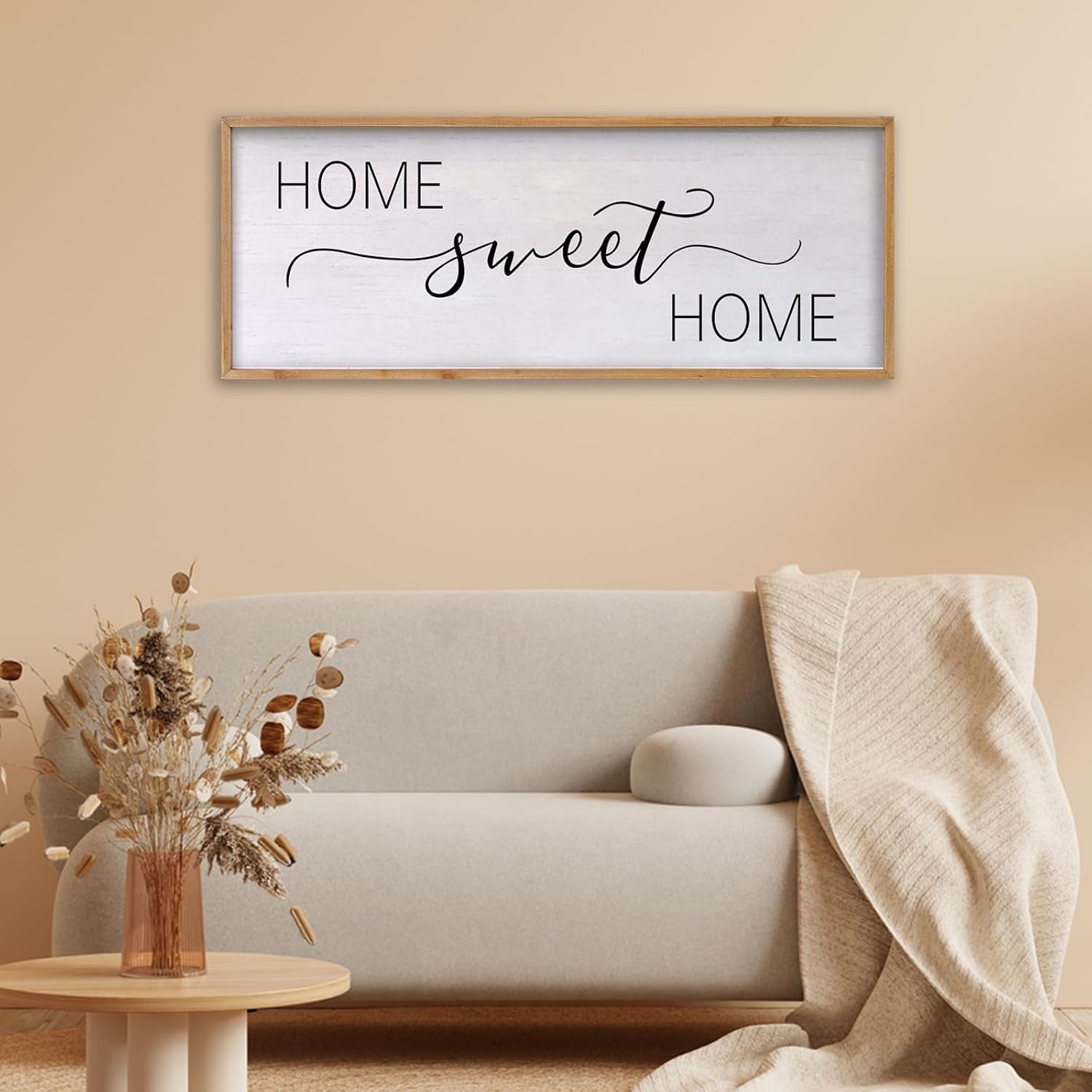 Home Sweet Home Sign Wall Decor 40"x15" Above Bed Living Room Large Wooden Framed Family Plaques Art (Wood)
