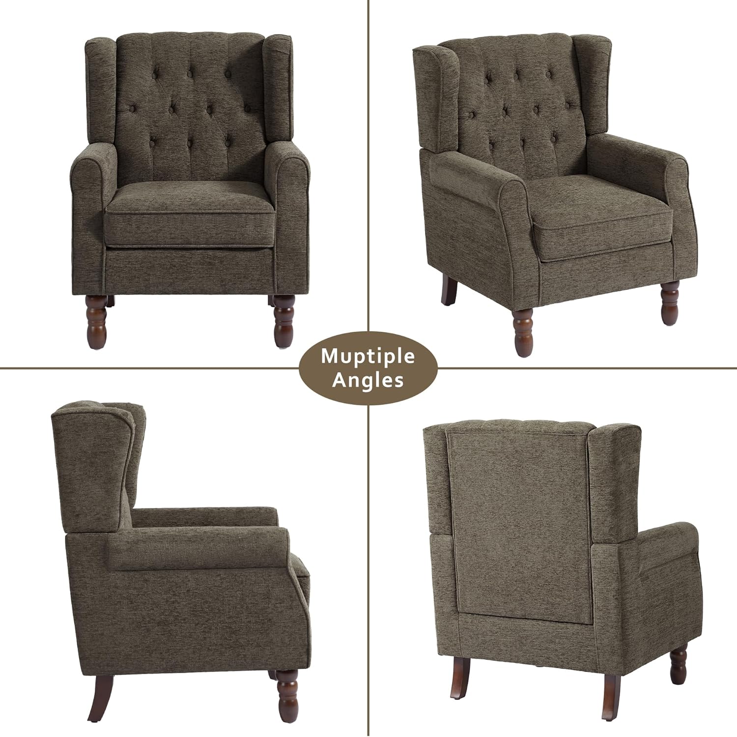 Lumibee High Back Accent Chair,Upholstered Wingback Armchair with Solid Wood Legs for Small Spaces,Comfy Single Sofa Chair for Living Room,Bedroom,Office-Taupe