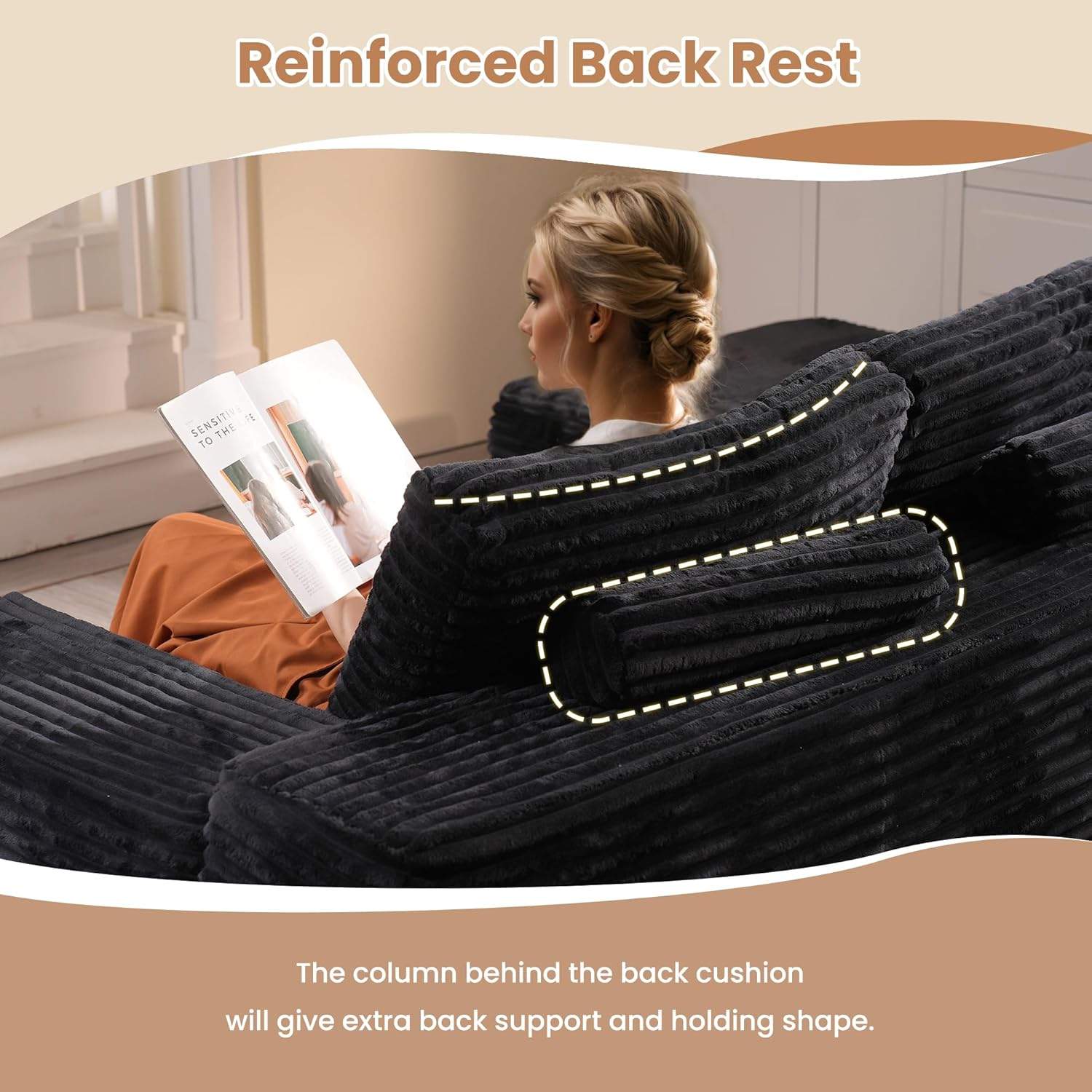 HOOOWOOO Cloud Sectional Couches for Living Room,Modular Sectional Sofa No Assembly,136X108 Inch Plush Corduroy Large U Shaped Floor Couch Set with Deep Seat Ottoman(Black)