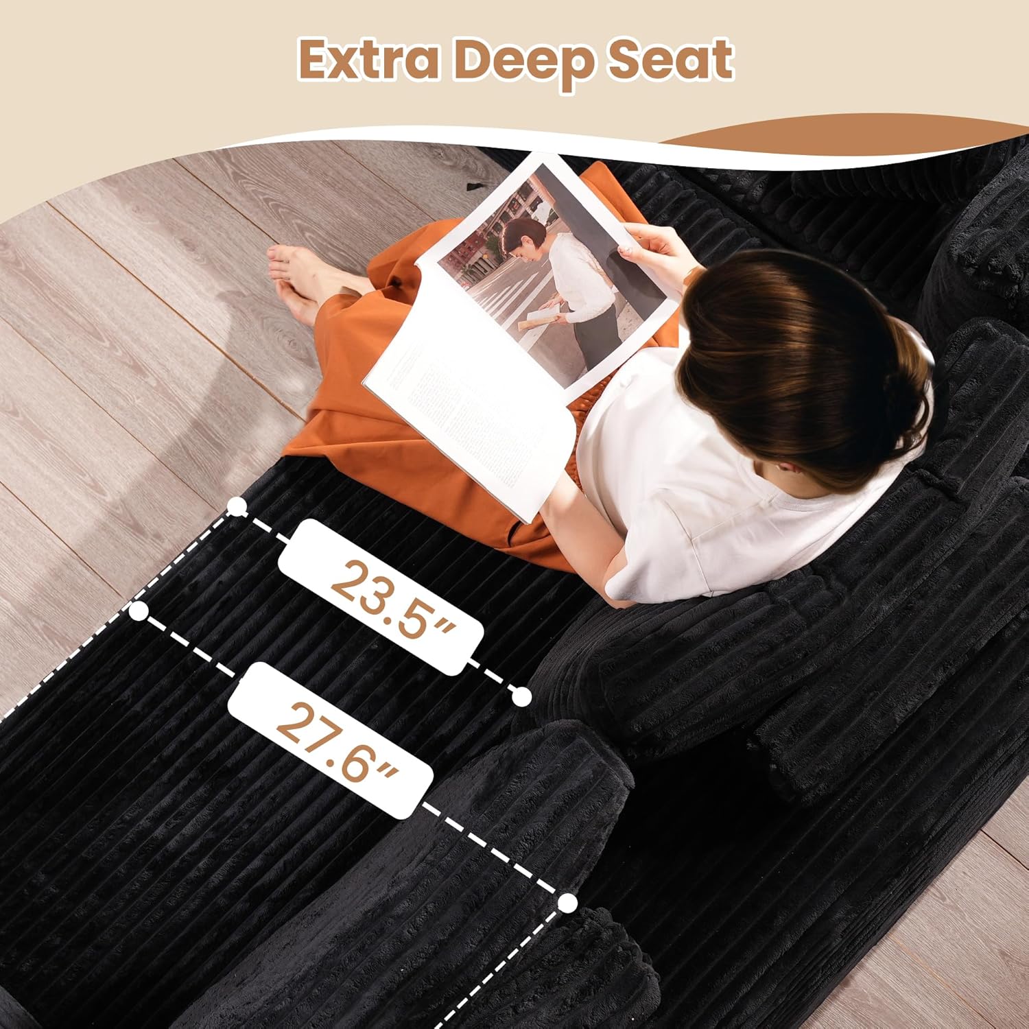 HOOOWOOO Cloud Sectional Couches for Living Room,Modular Sectional Sofa No Assembly,133X70 Inch Plush Corduroy Large U Shaped Floor Couch Set with Deep Seat Chaise Ottoman(Black)