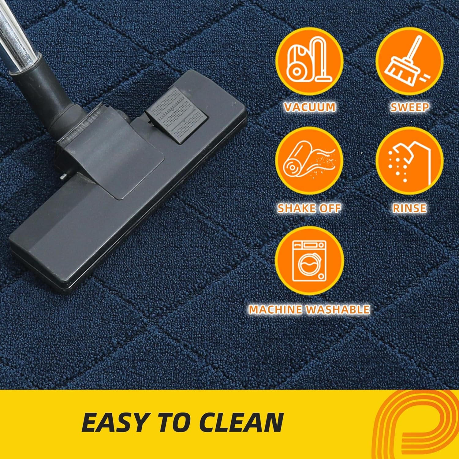 - EASY TO CLEAN: The stain and fade resistant Polyester carpet surface can be easily cleaned by the vacuum cleaner. For a deeper clean, machine wash separately in cold water, using mild detergent. Tumble dry, low heat. Do not use bleach or fabric softener. Our doormat will not fade or wear out and will remain like new even after repeated washing