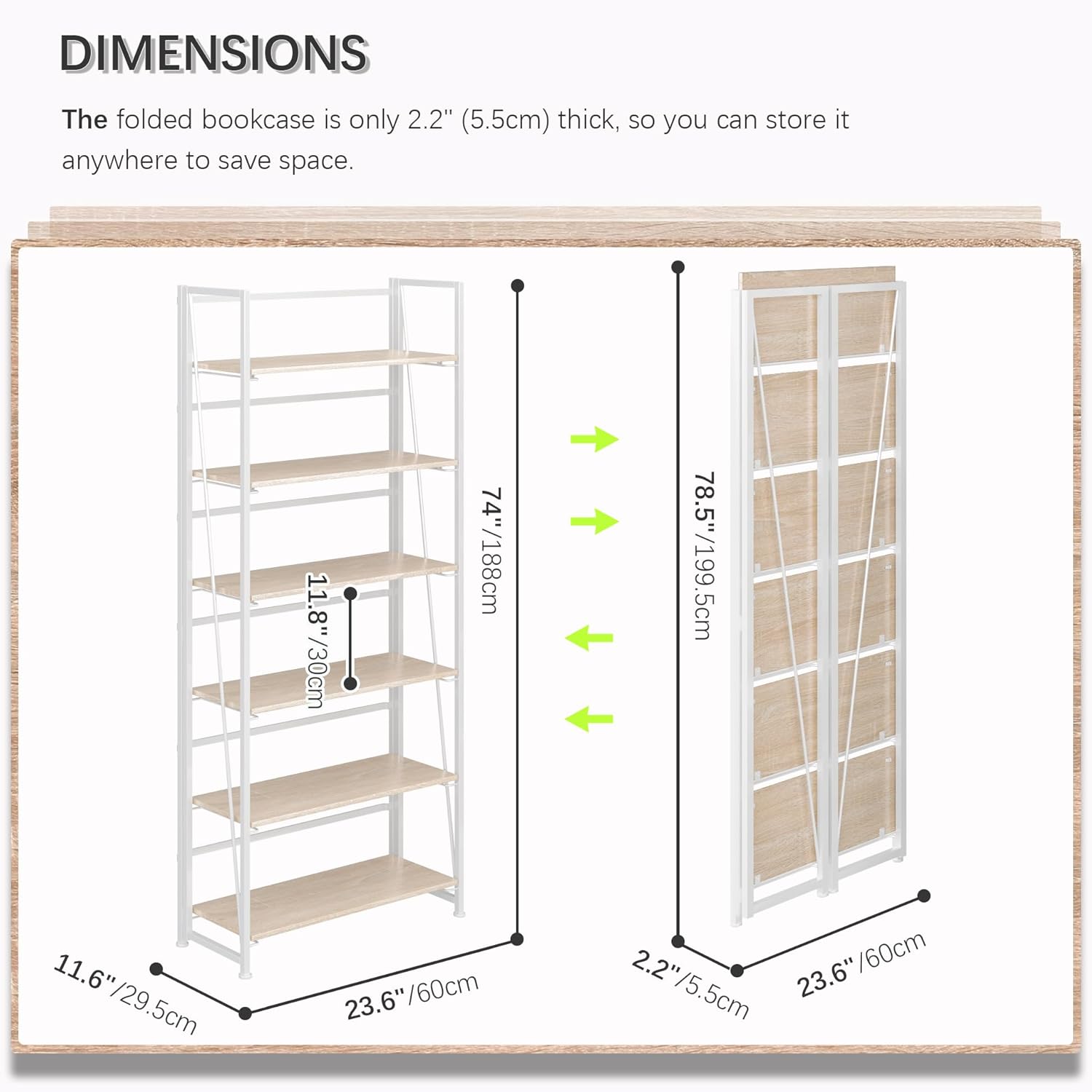 - 【Storage shelf folding sized】23.62x2.2x78.54 inches (60x5.5x199.5cm).
