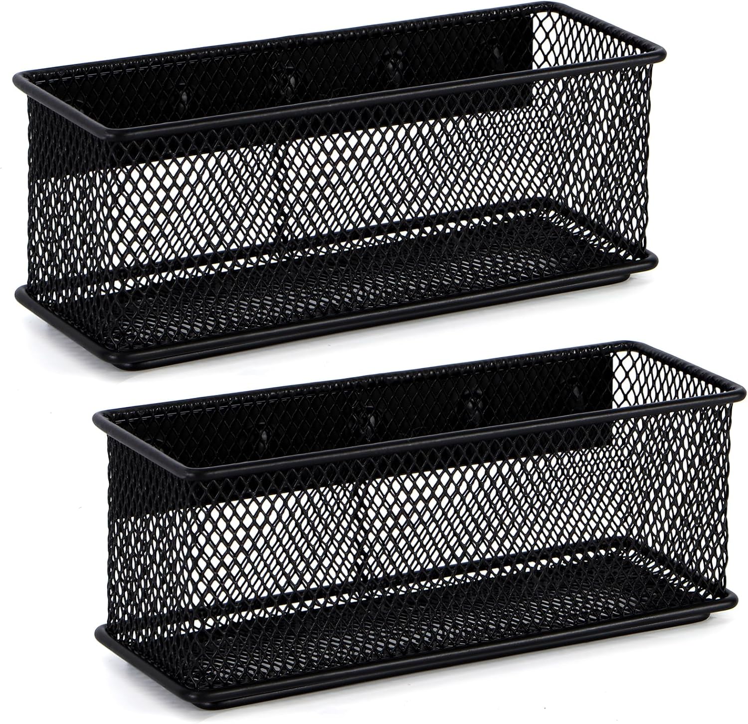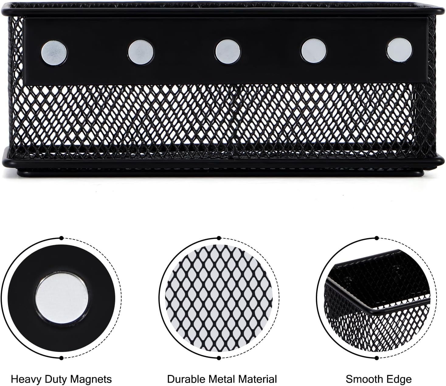 6.29'' × 2.28'' × 2.48 Black Magnetic Basket for Refrigerator Magnetic Pen Holder Locker Organizer for Home Office Accessories Magnetic Basket for Whiteboard,Set of 2
