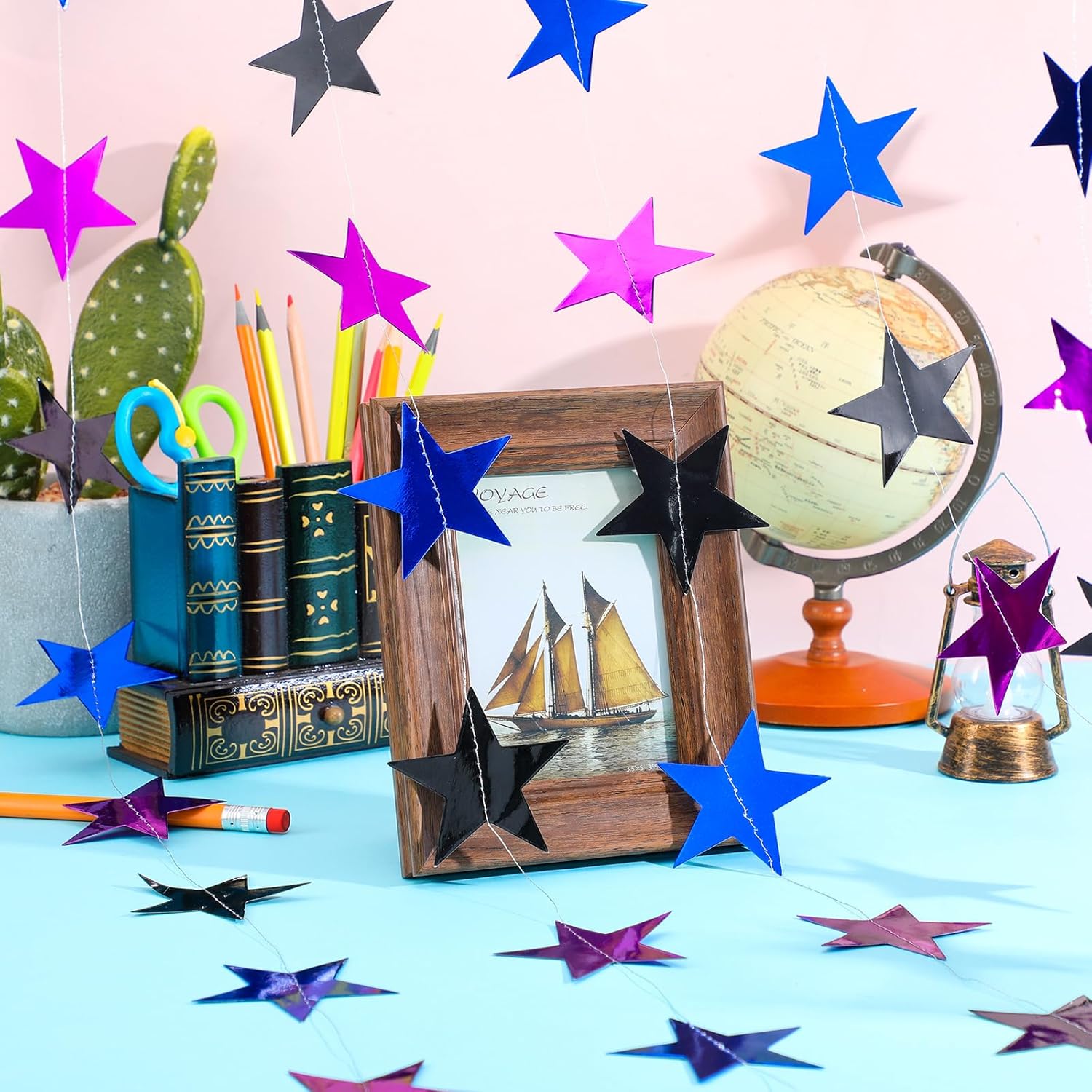 Patelai Glitter Star Garland Banner Decor 130 Feet Star Hanging Bunting Banner Twinkle Backdrop for Homecoming Classroom Wedding Birthday Halloween Christmas Party Supplies(Blue,Black,Purple)