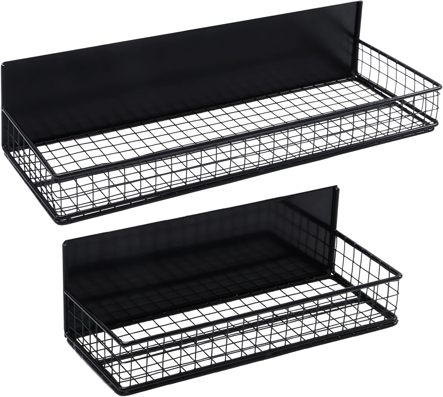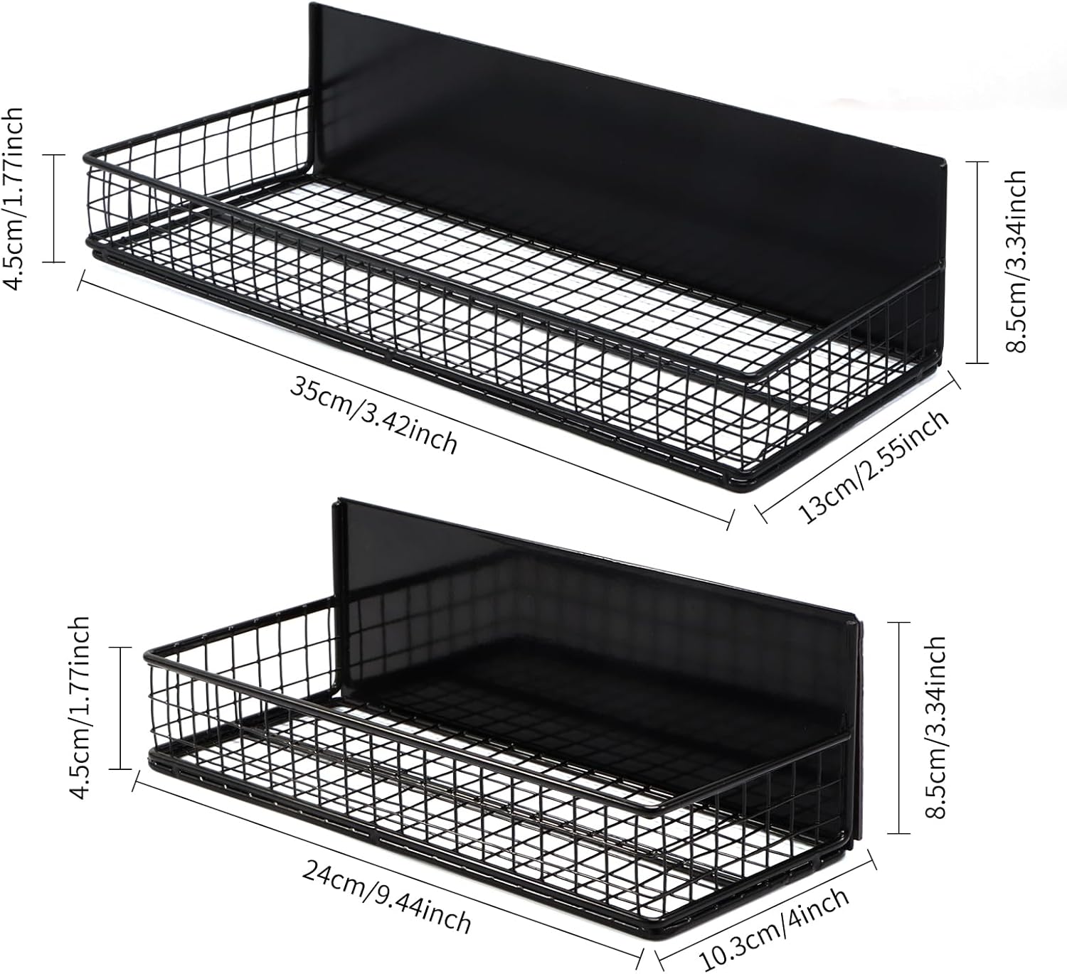 Magnetic Storage Basket, Magnetic Shelf for Fridge,Magnetic Spice Rack Wire Mesh Magnetic Organizer Holder Accessories for Office Kitchen Classroom Storage, Black-Short, Large x1&Small x1 Set of 2
