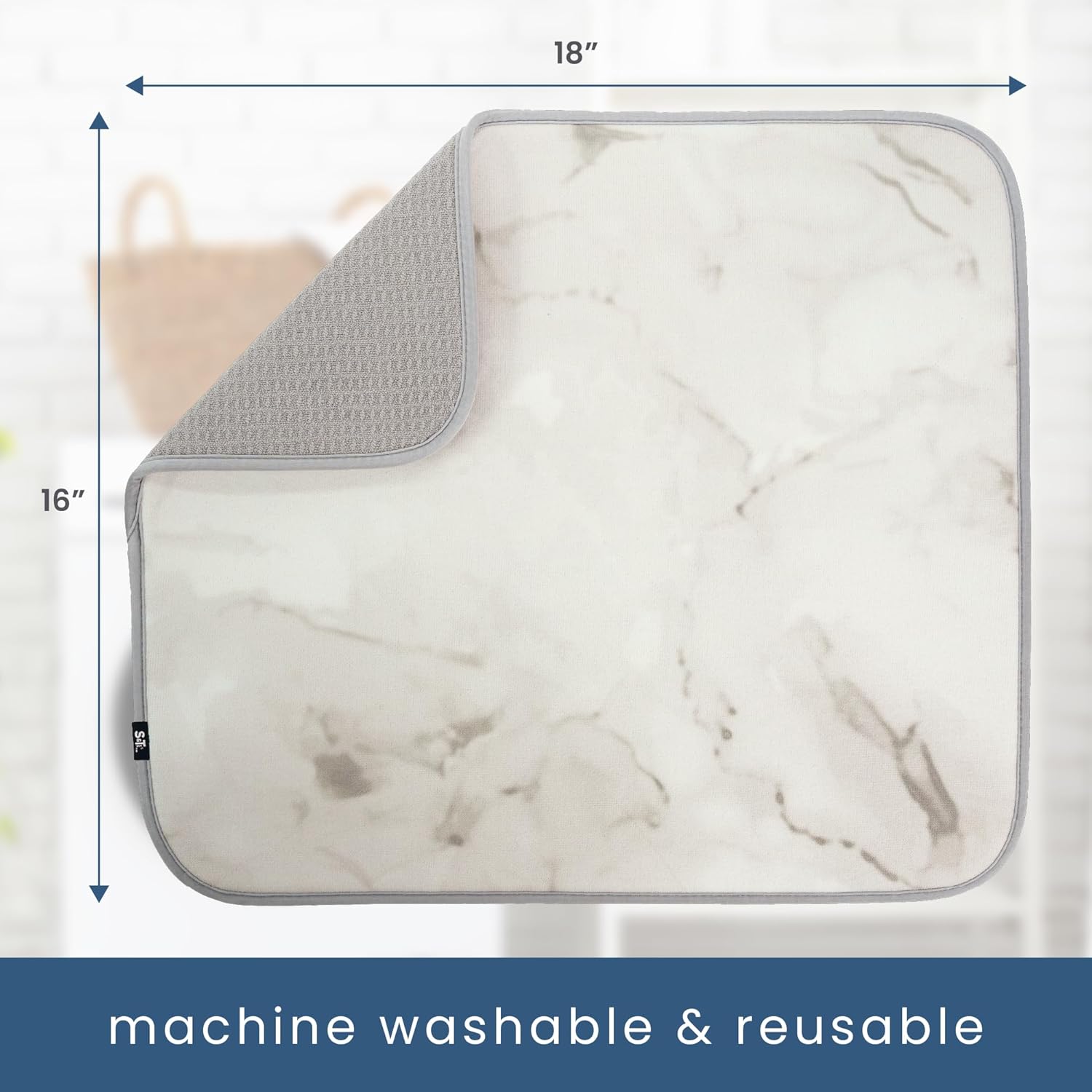 - Dish drying mats for kitchen counter are reusable, machine washable, and easy to store for kitchen organization; durable construction will not chip or break like a stone dish drying mat for kitchen