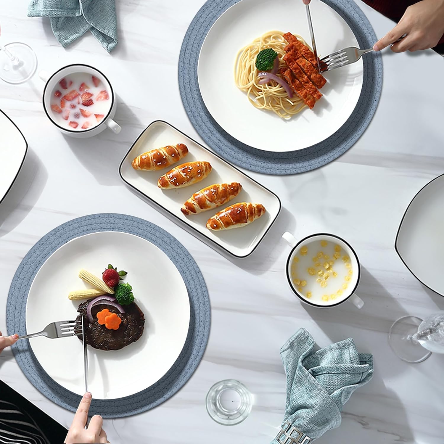 Round Placemats Set of 6, Cotton Rope Woven Table Mats, Hot Pads for Kitchen, Non Slip Heat Resistant Place Mats, 13 Inches Braided Placemat for Farmhouse Decor and Kitchen Table Decor (Blue)