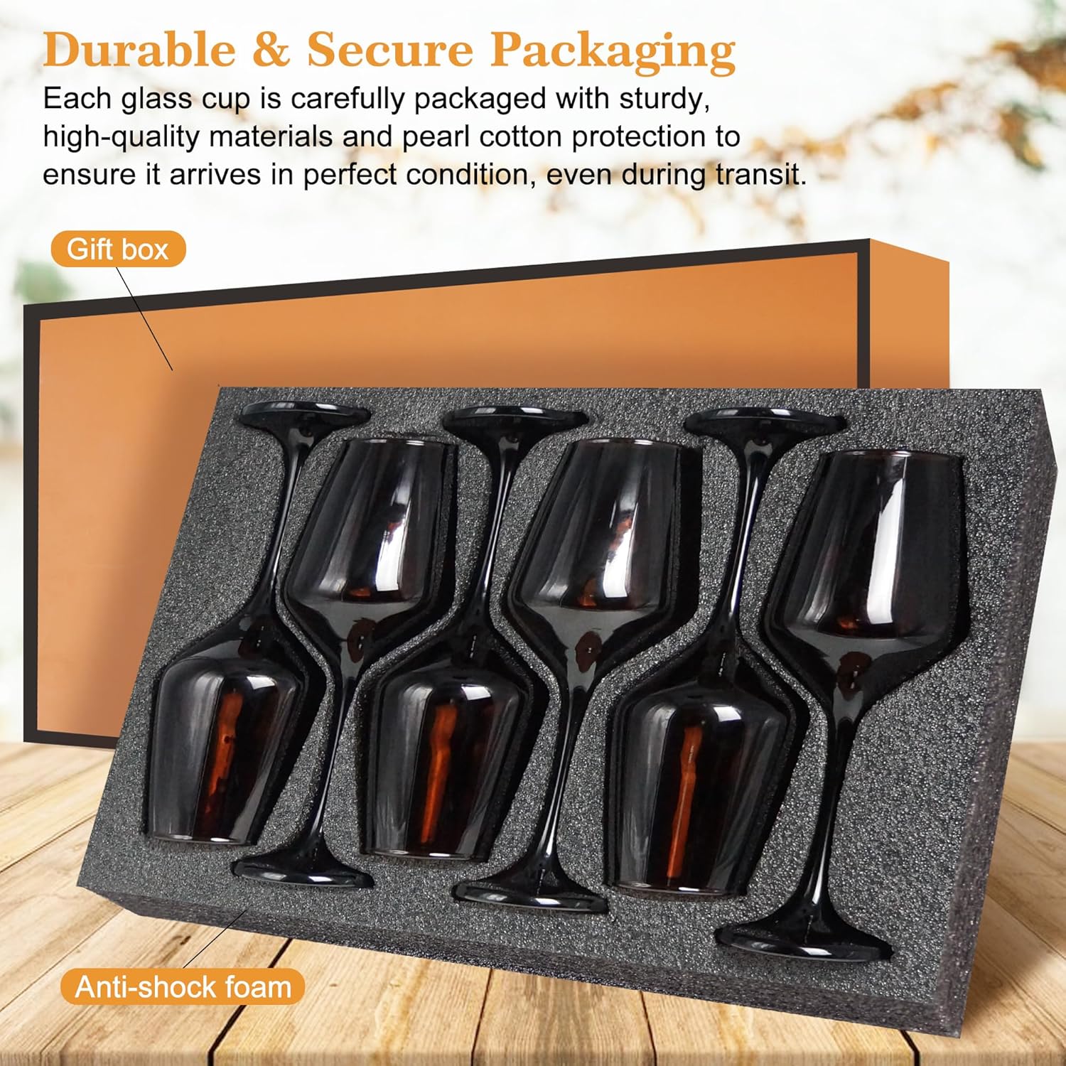 - 【Elegant and Secure Packaging】Glazvia unique wine glasses is carefully packaged in an elegant and durable box to ensure safe delivery. The sturdy packaging protects the Brown glasses drinkware during shipping, so you can be confident they will arrive in perfect condition. Whether purchasing for personal use or as a wine glasses gift set, this thoughtful packaging adds an extra touch of sophistication, making the unique wine glasses set of 6 as an wine glass gifts for women.